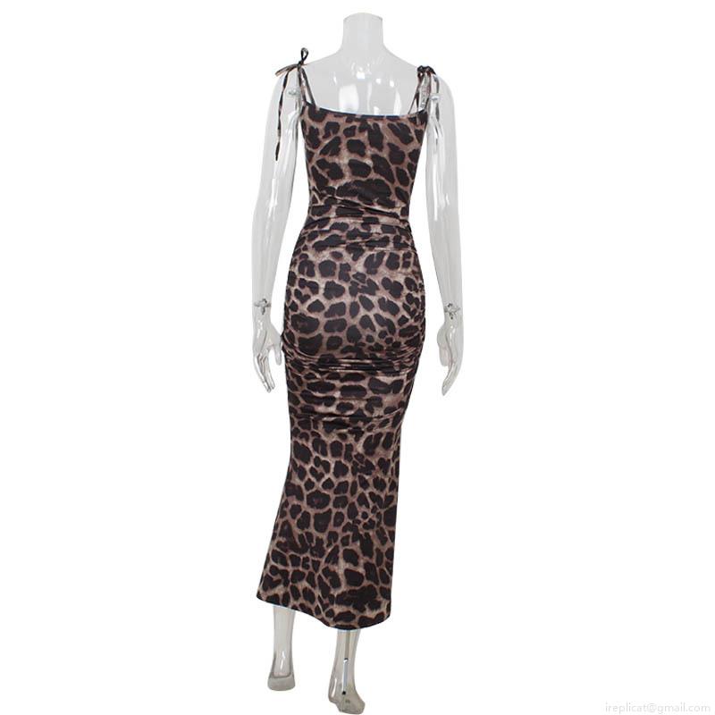 • Women's Sexy Leopard Print Slit Maxi Dress Polyester Spandex Ruched V-Neck Spaghetti Strap High Waist Bodycon Long Dress For Party Club Night Out