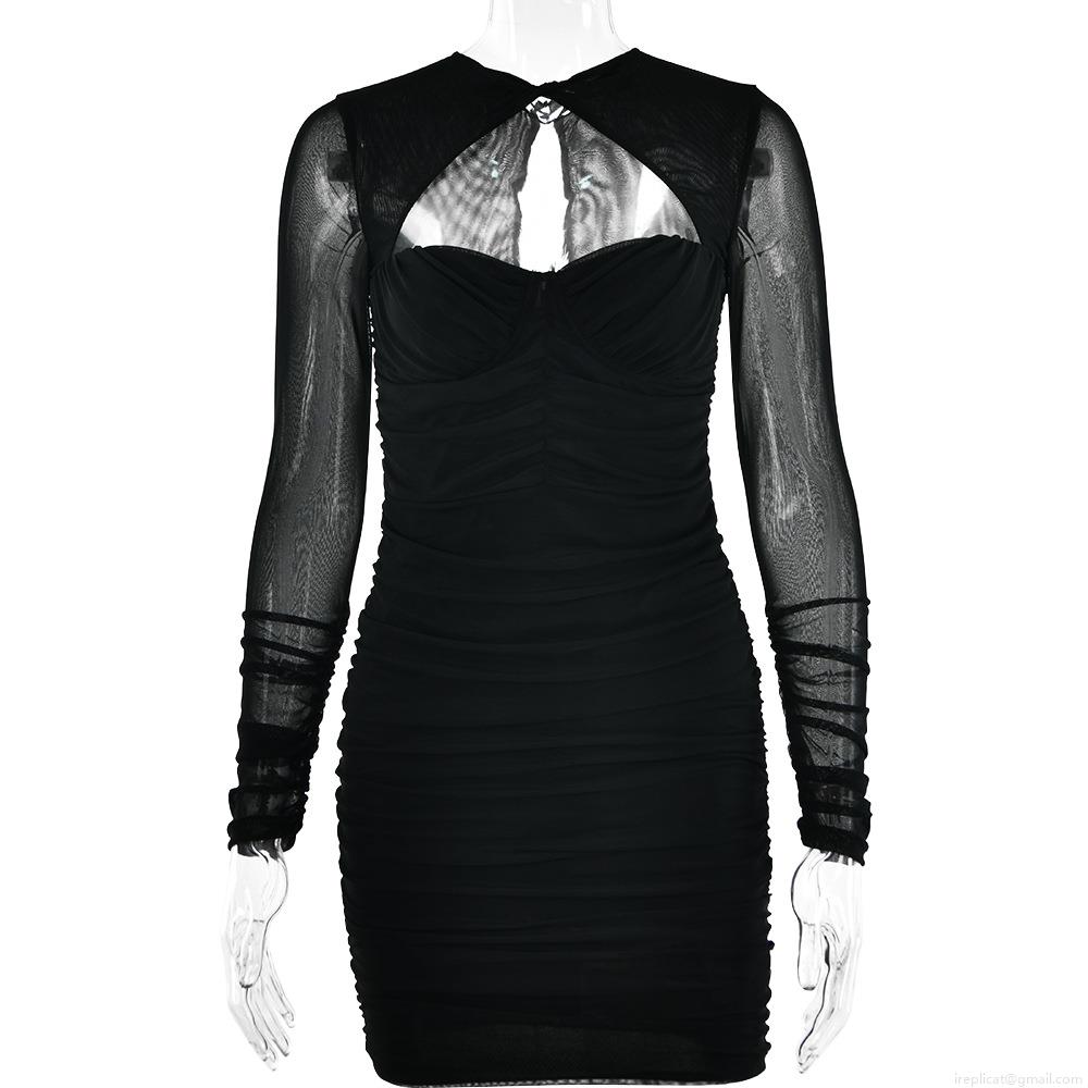 • Women's Sexy Long Sleeve Mesh Patchwork Ruched Mini Dress Hollow Out Cut Out Bodycon Club Party Dress Elegant Tight Pencil Skirt Slim Fit Dress