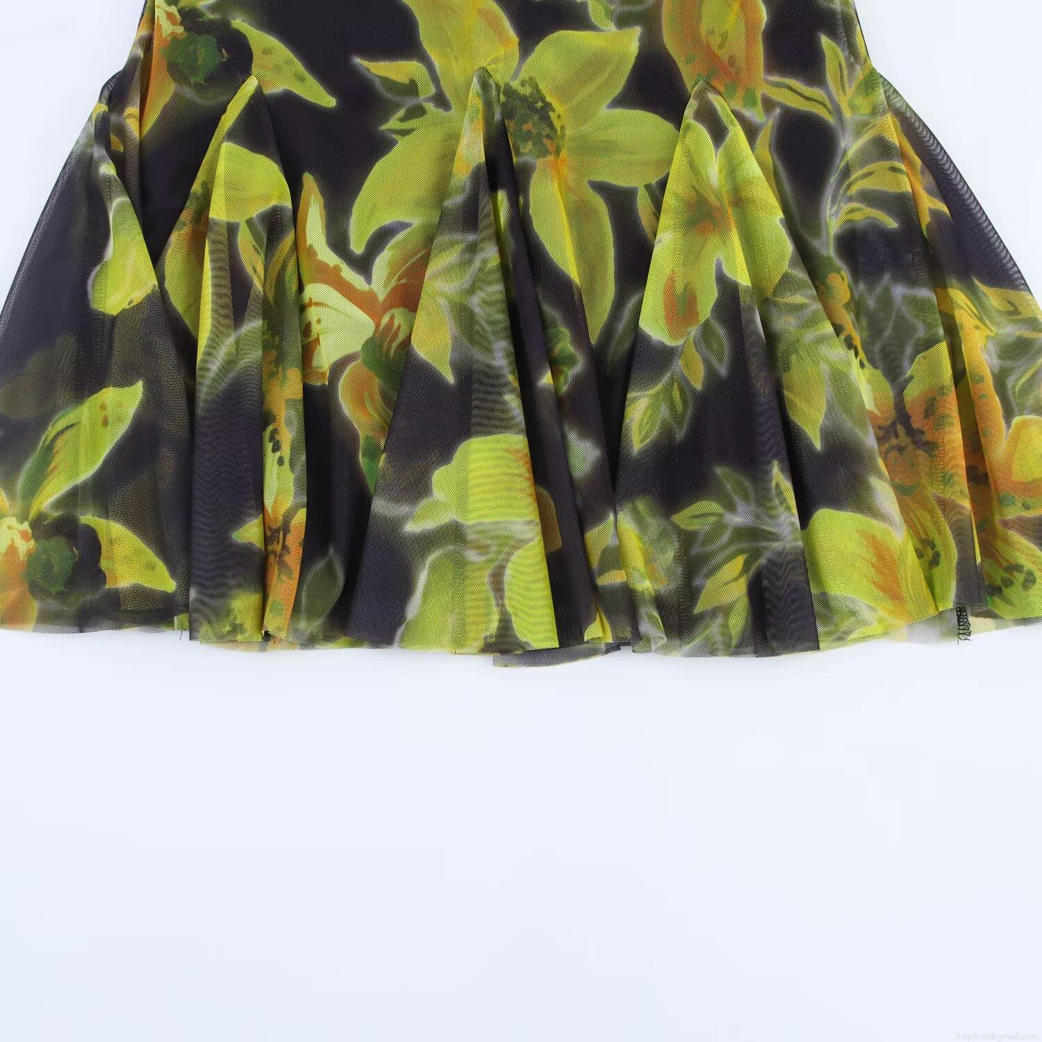 Women's Sexy Mesh Floral Print Mini Dress Sleeveless Spaghetti Strap Cowl Neck Ruched Bodycon Party Dress Elegant Socialite Summer Sun Dress