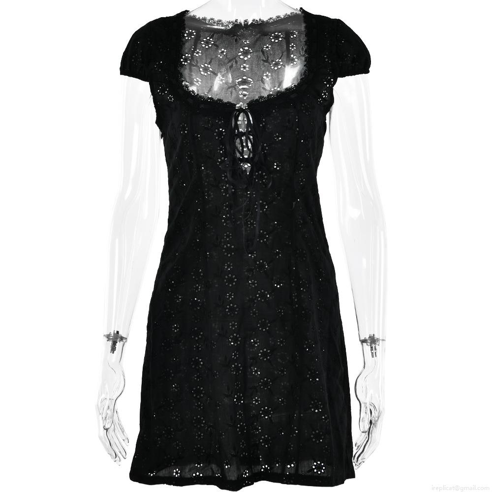 • Women's Sexy Mini Dress Lace Embroidery Hollow Out Tie Up Front Sleeveless Bodycon Short Dress for Party Club Streetwear Vintage Aesthetic Polyester