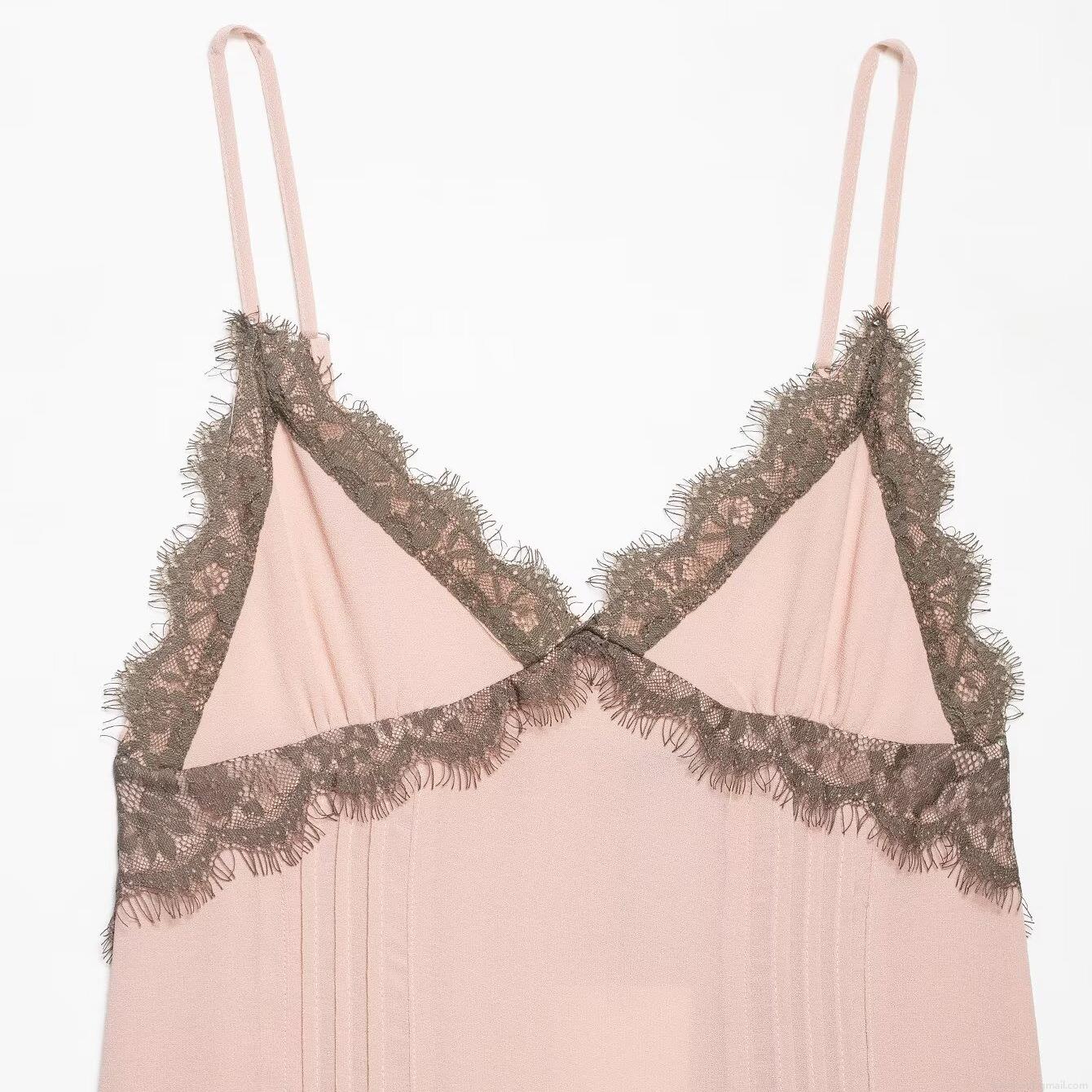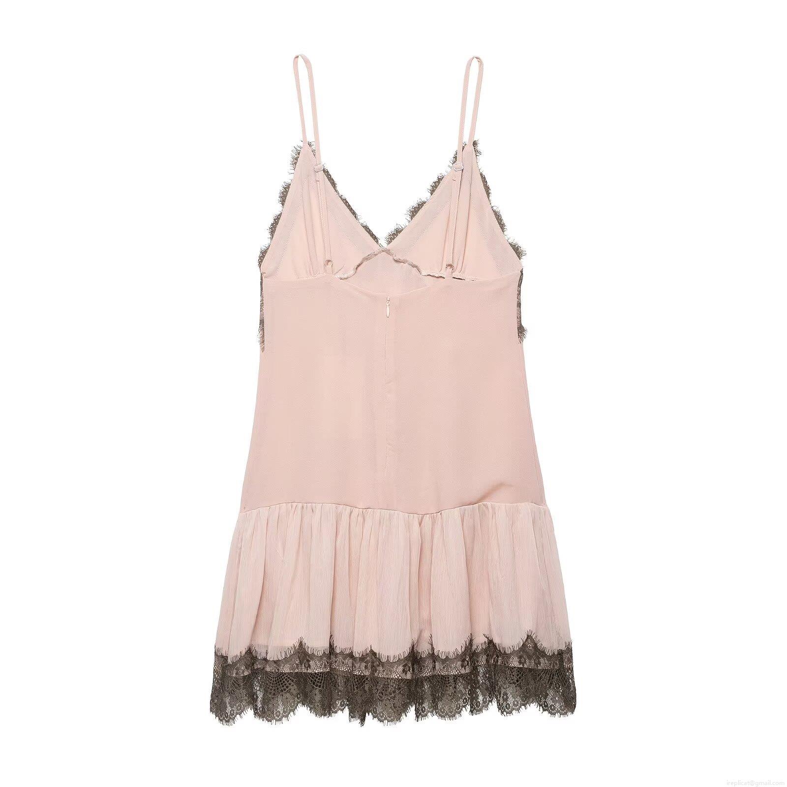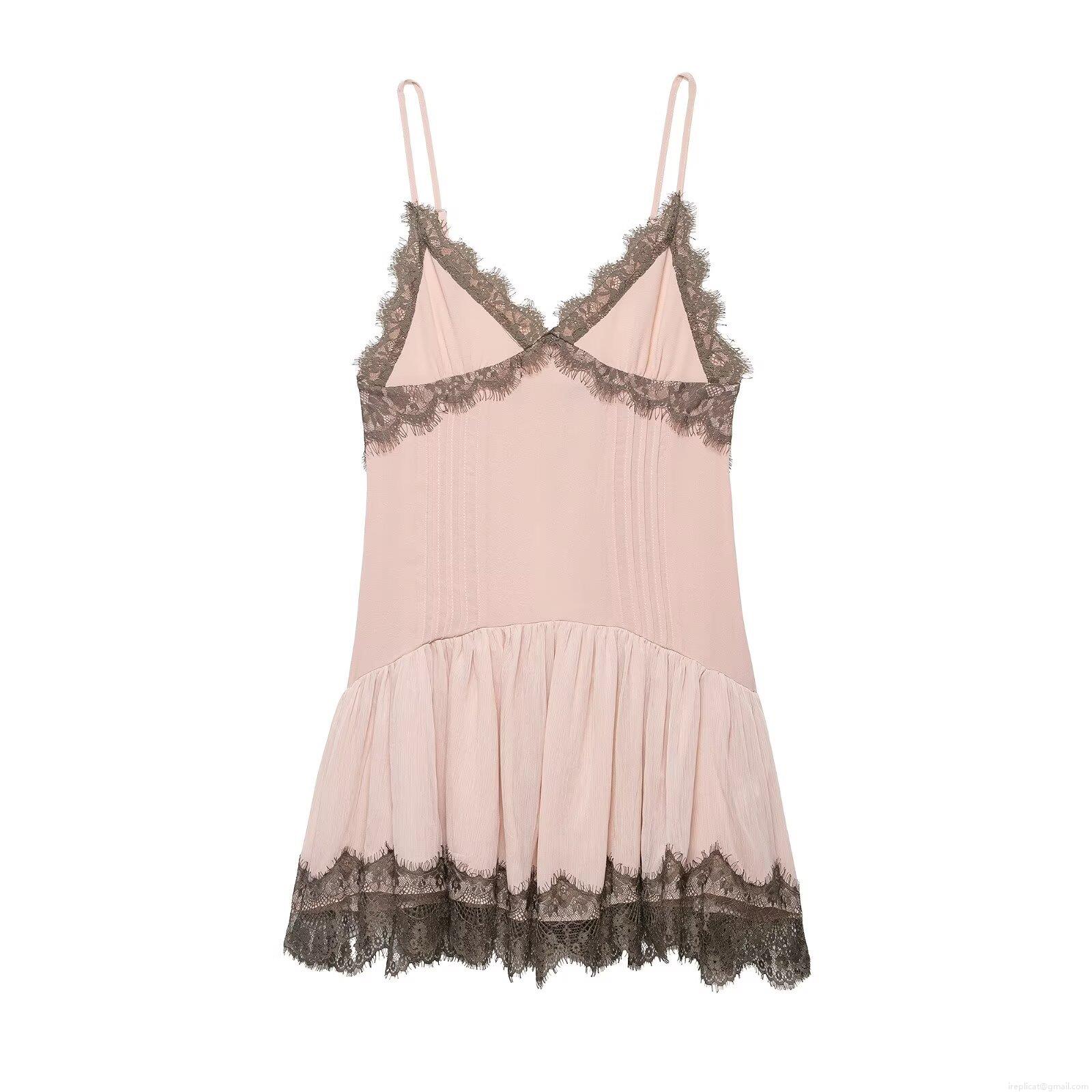 • Women's Sexy Mini Dress Lace Patchwork Spaghetti Strap V Neck Sleeveless Backless High Waist Pleated Short Dress For Party Clubwear Sweet Pink Lolita Style Summer Dress