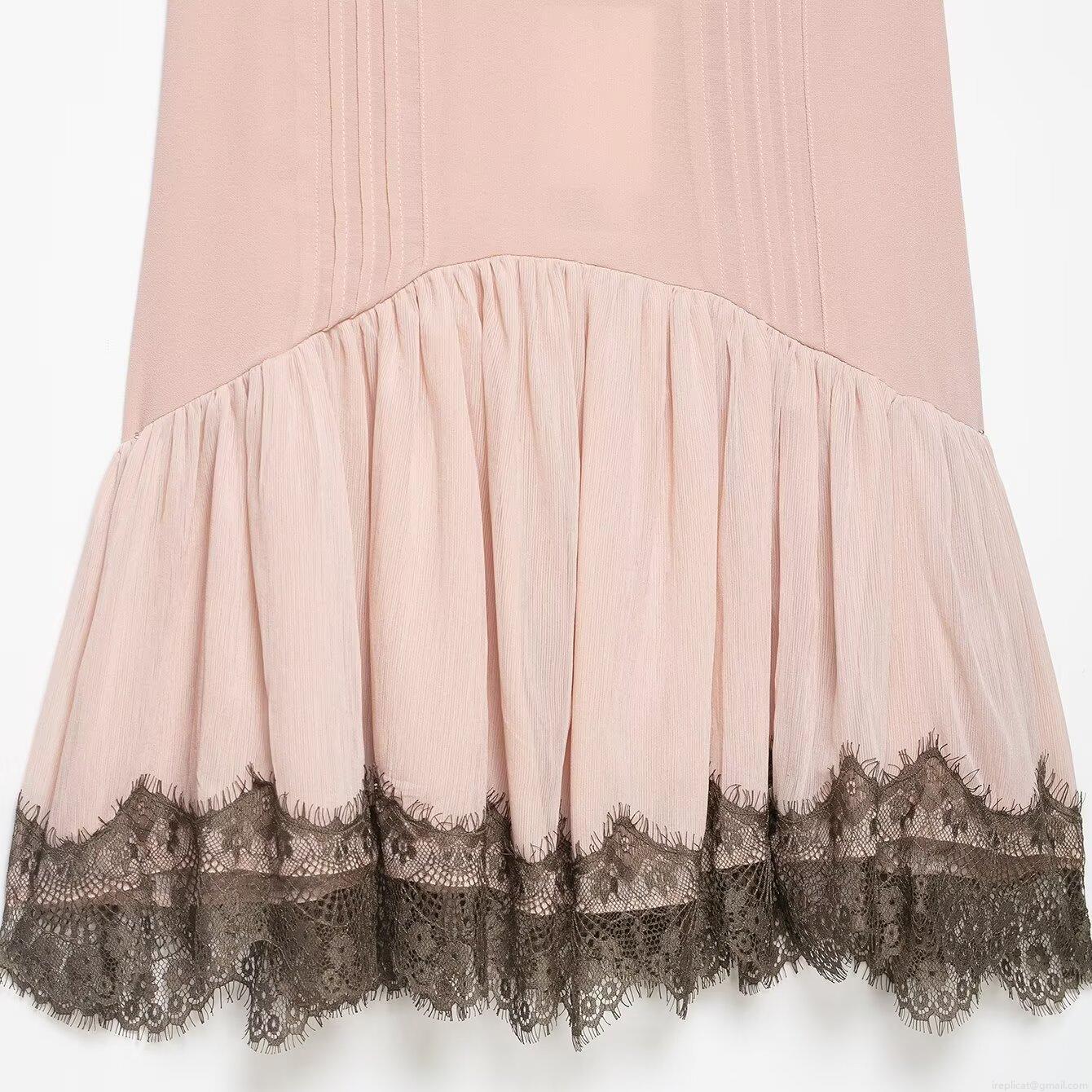Solid Color, Splice, Pleats, V-neck, Backless, Lace Patchwork, Eyelash Lace