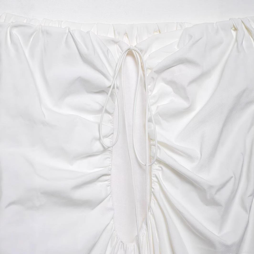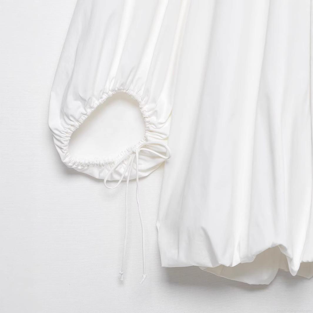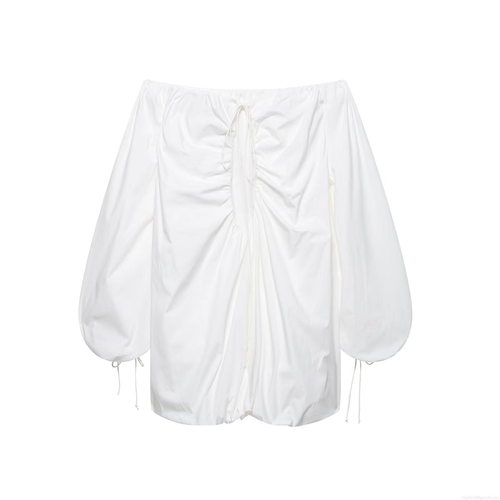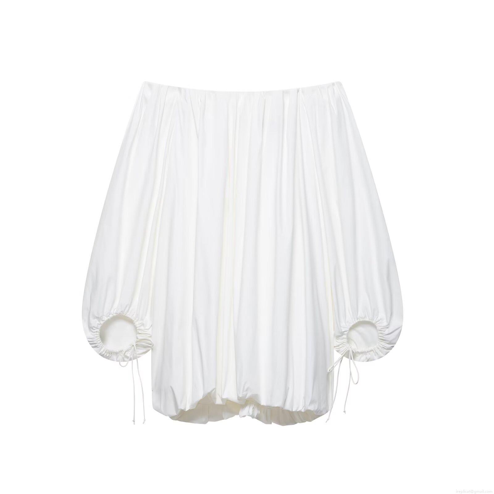 • Women's Sexy Off-Shoulder Pleated Mini Dress Summer White Long Bubble Sleeve Drawstring Polyester Woven Party Club Outfits