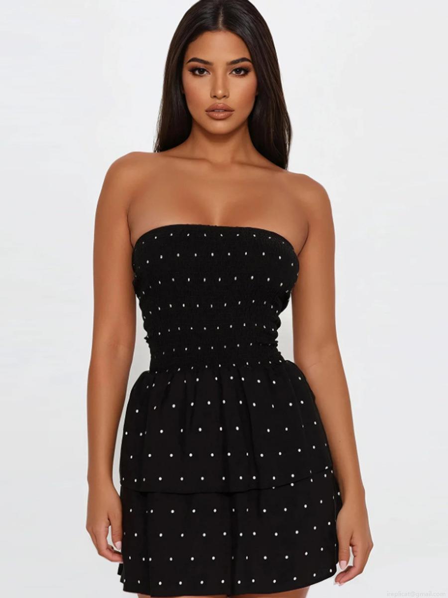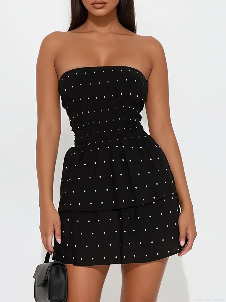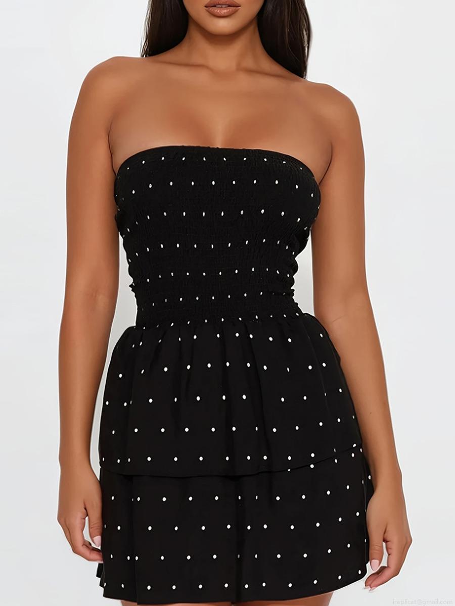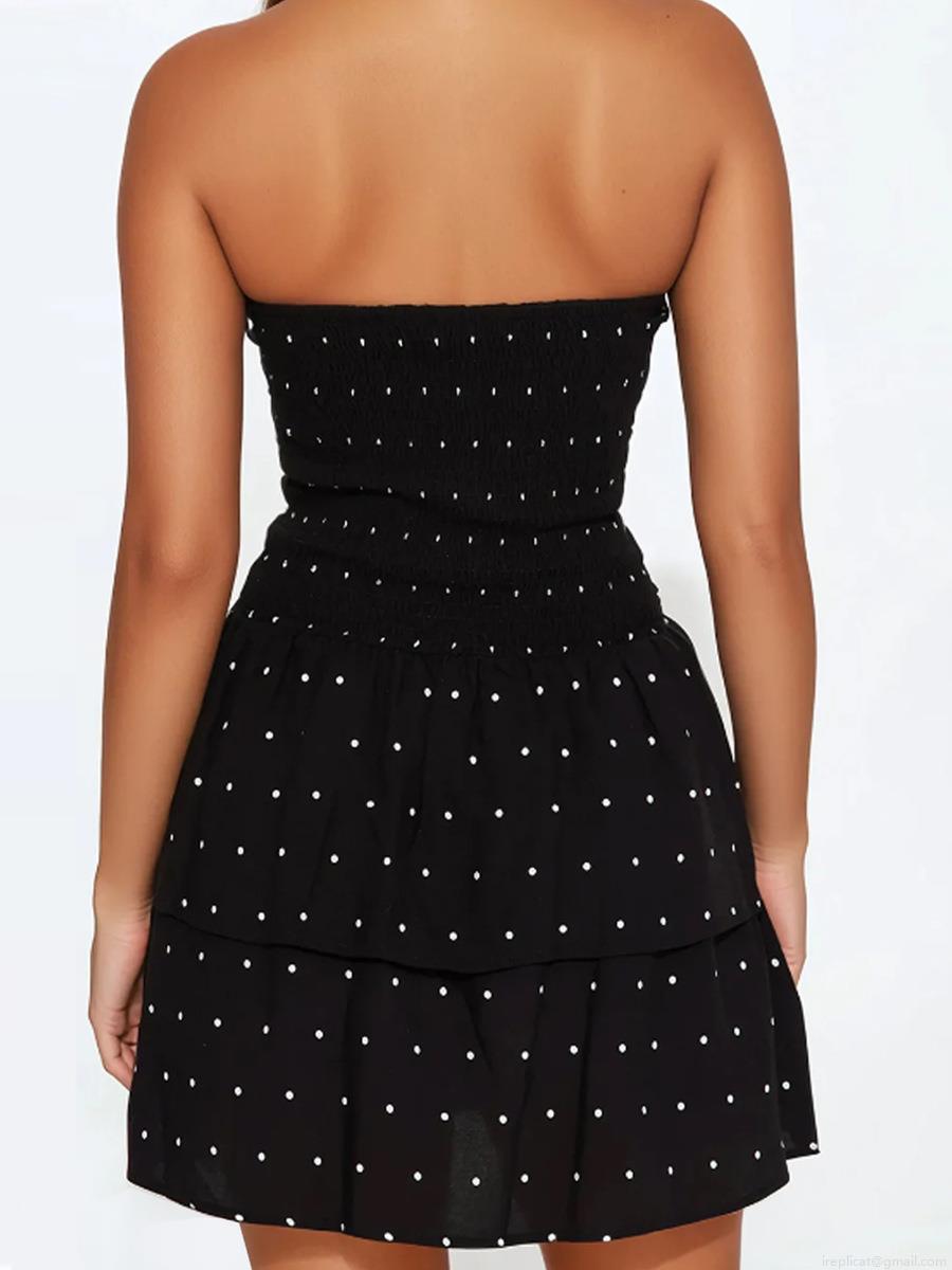 • Women's Sexy Off-Shoulder Polka Dot Mini Dress Elegant Smocked Waist Tiered Ruffle Hem A-Line Chiffon Sundress For Party Vacation Summer Date Night