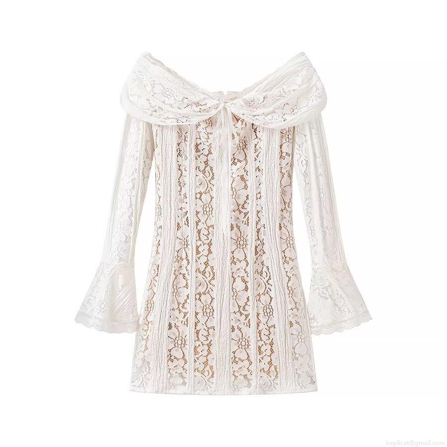 Women's Sexy Off-The-Shoulder Lace Mini Dress Long Sleeve Slim Fit Bodycon Party Dress Elegant White Trumpet Sleeve Clubwear