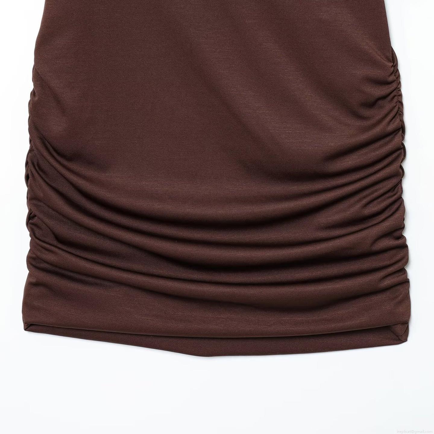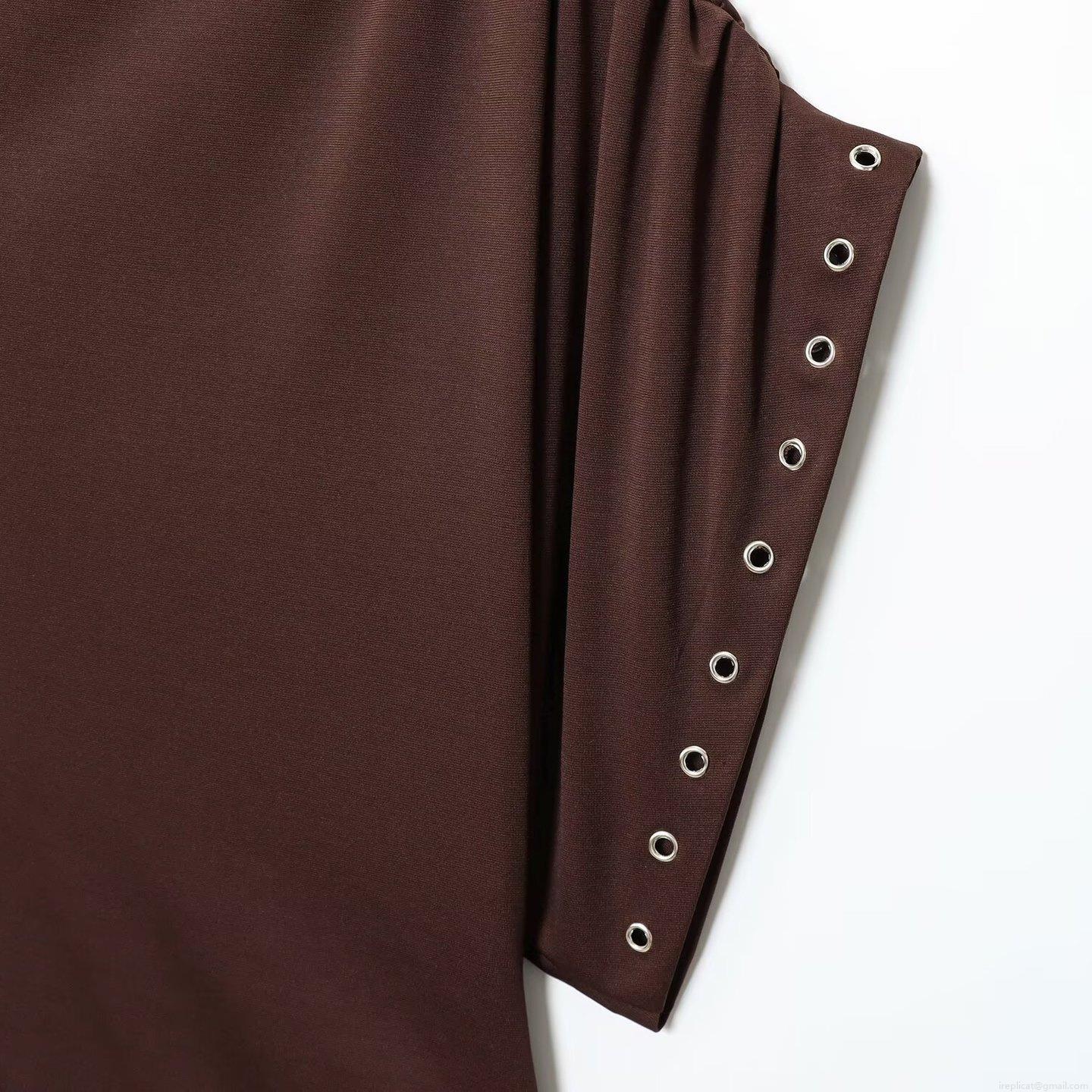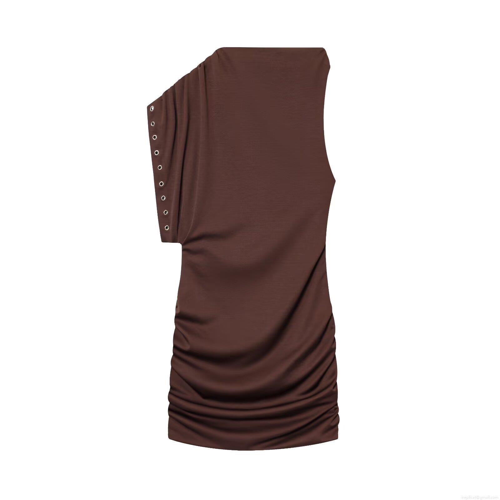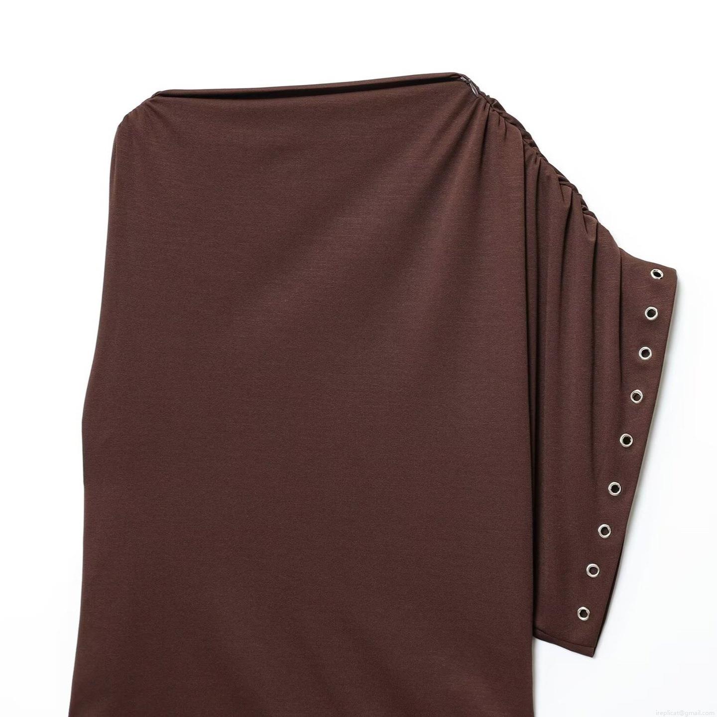 Solid Color, Asymmetric, Pleats, Sloping Shoulders, Metal Air Vent