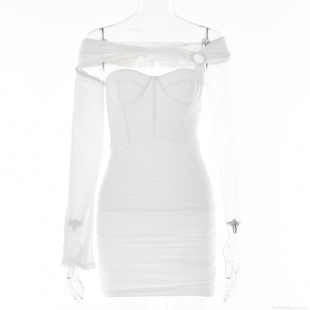 • Women's Sexy One Shoulder Mesh Long Sleeve Bodycon Mini Dress Ruched High Waist Backless Party Dress Slim Fit Short Pencil Dress For Clubwear