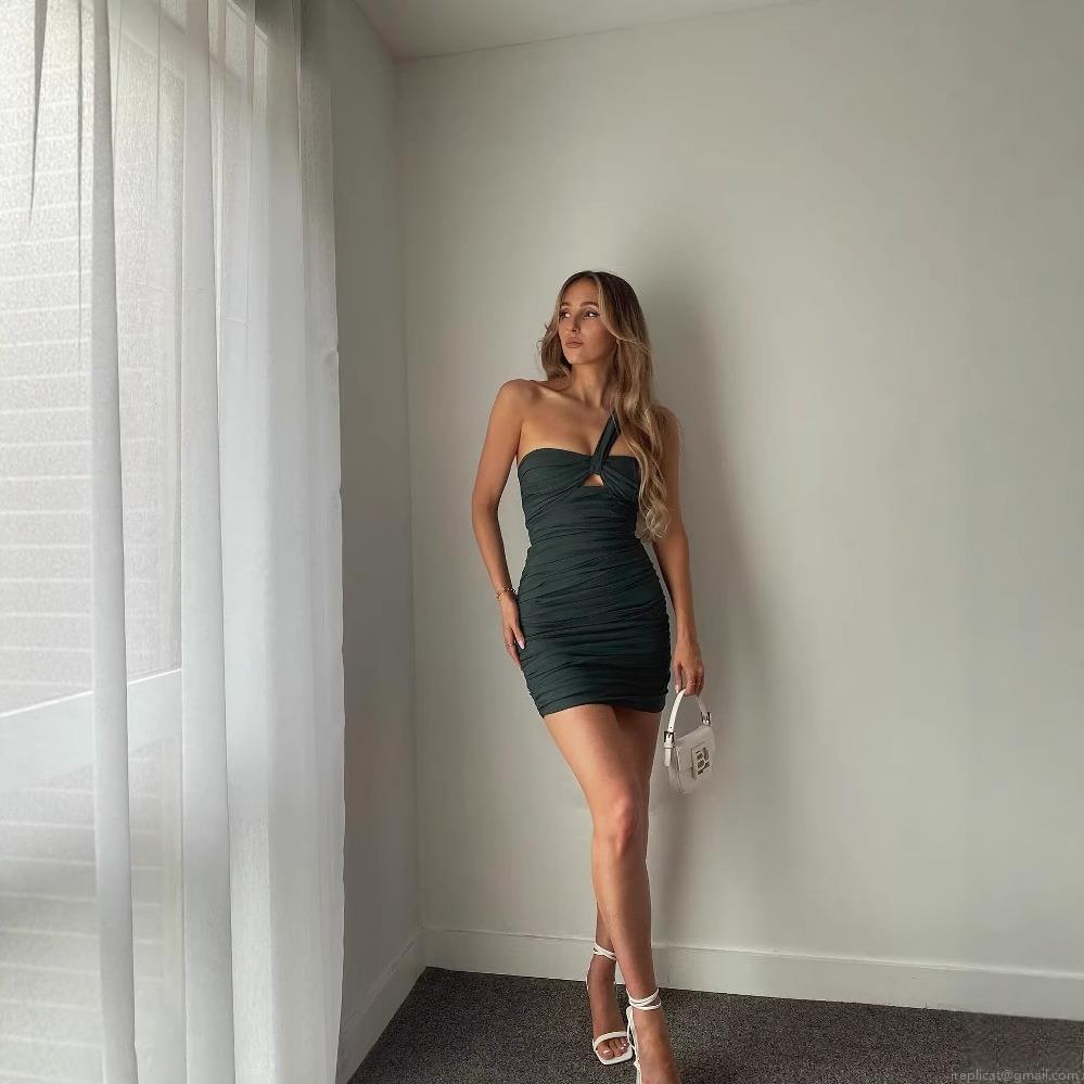 • Women's Sexy One Shoulder Ruched Bodycon Mini Dress 95% Polyester 5% Elastane Dark Green Sleeveless Backless Night Out Party Clubwear Dress