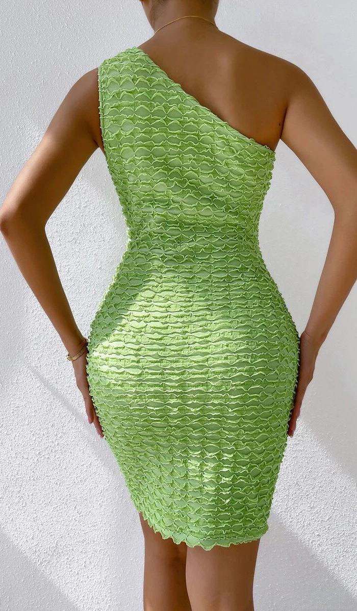 • Women's Sexy One Shoulder Ruched Bodycon Mini Dress With Cut Out Detail Solid Green Sleeveless Spandex Polyester Party Clubwear Cocktail Pencil Short Dress