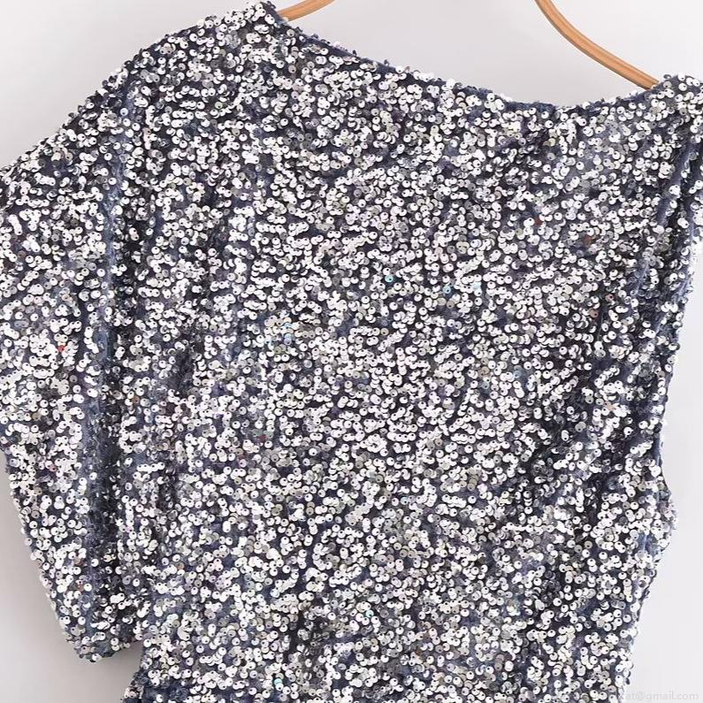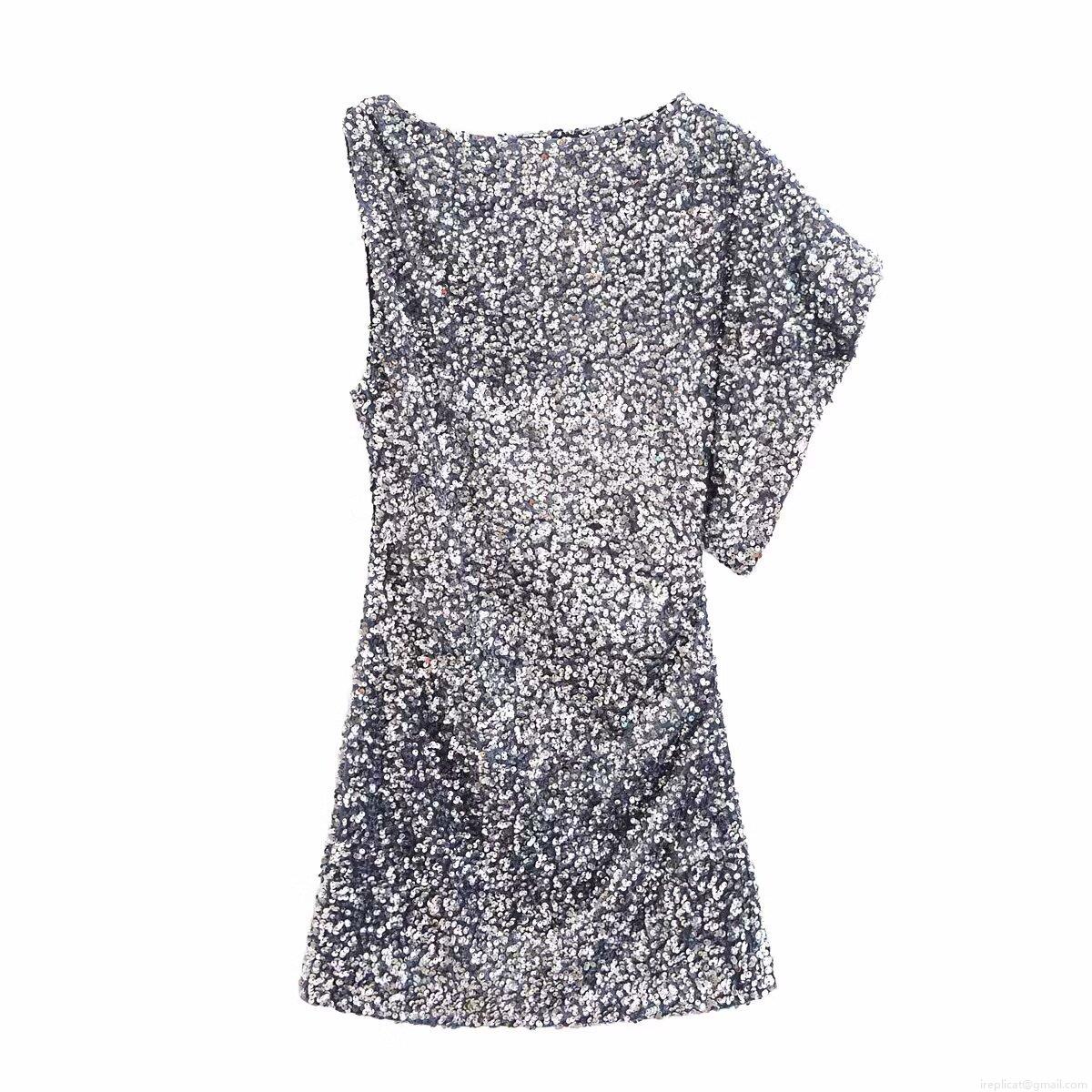 Solid Color, Sequin, One Shoulder, Asymmetrical Design