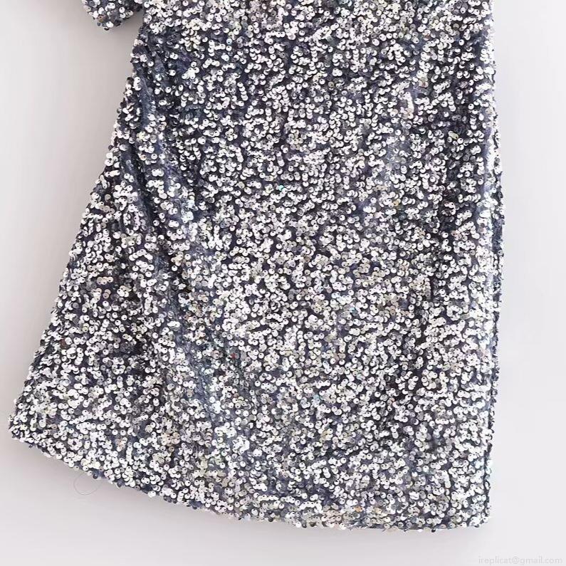 Women's Sexy One-Shoulder Sequin Mini Dress Silver Asymmetrical Bodycon Party Dress Polyester Evening Banquet Gown Clubwear Short Sleeve Cocktail Dress