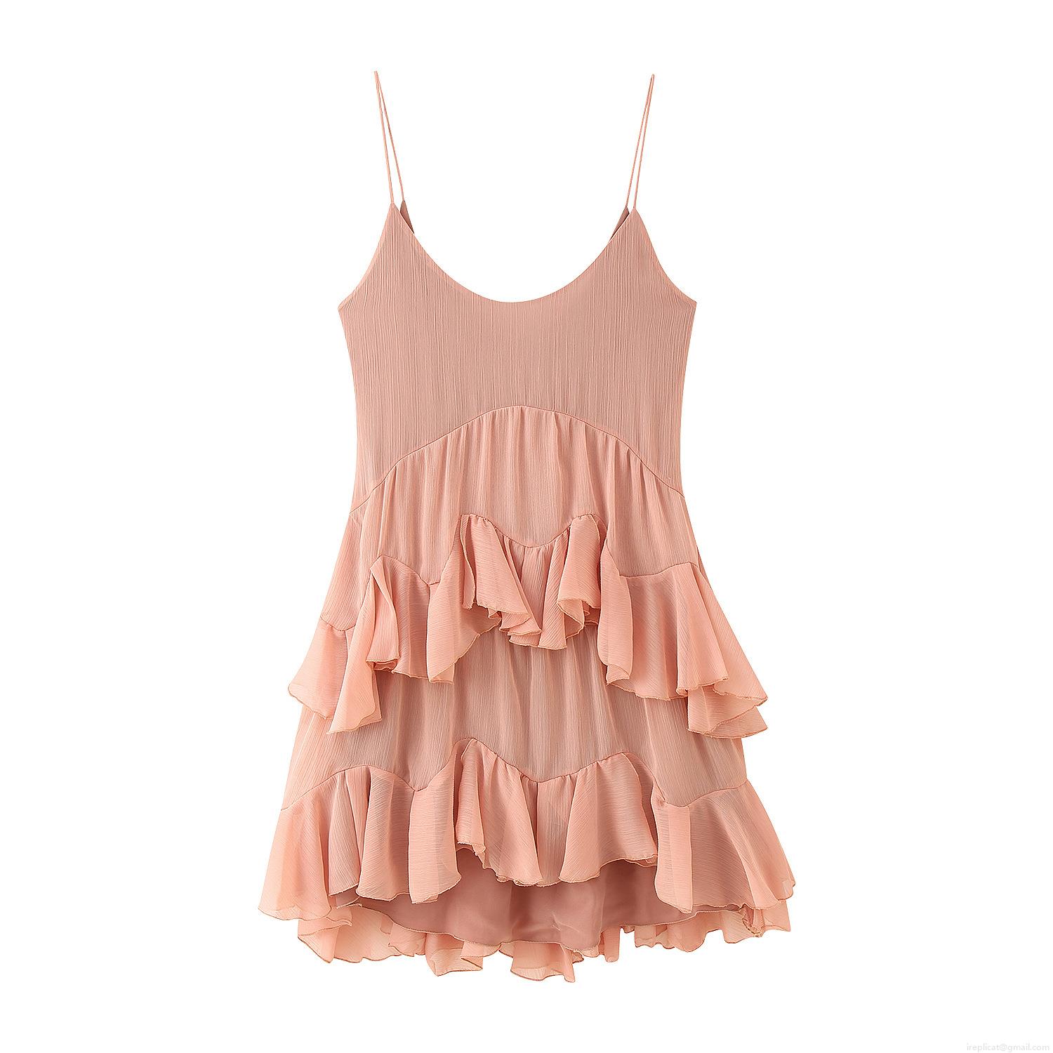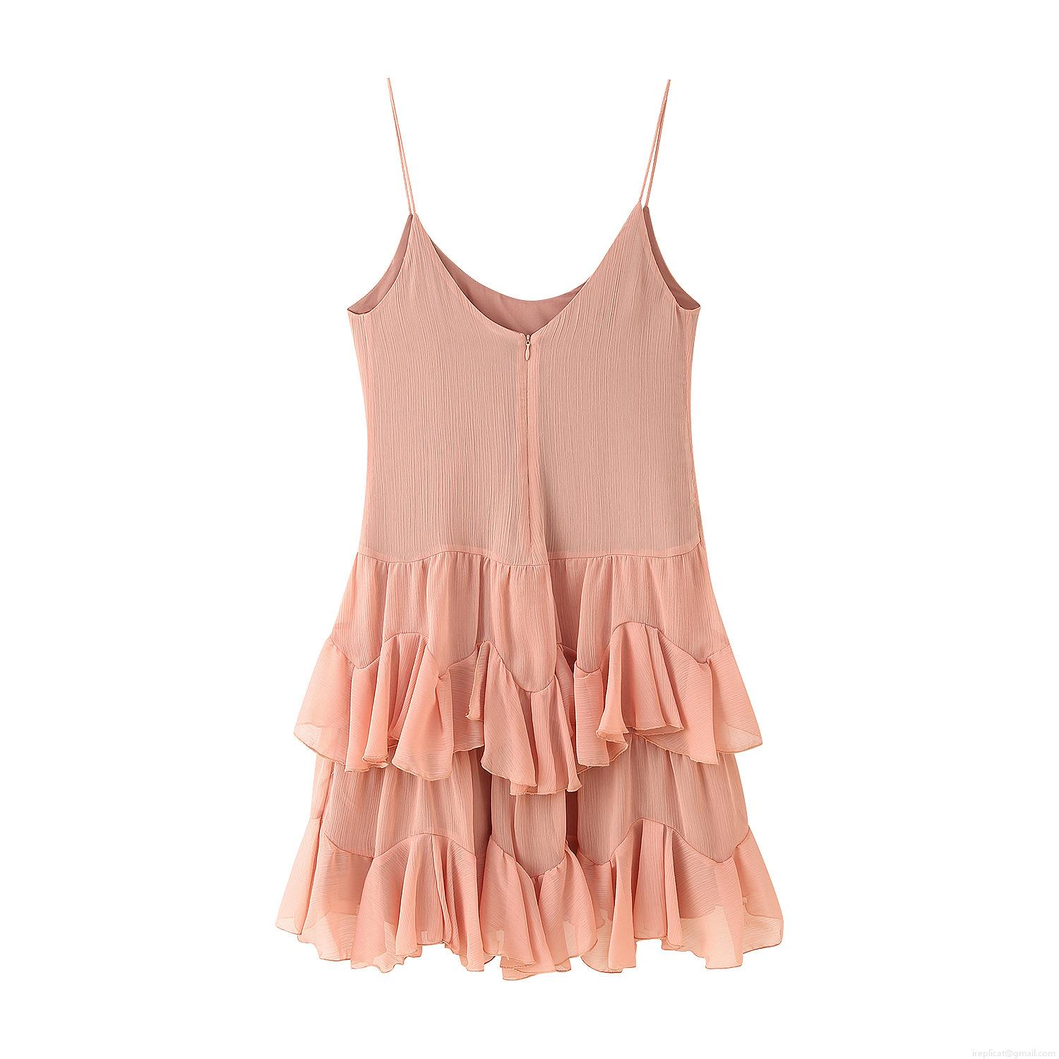 • Womens Sexy Pink Chiffon Layered Ruffle Camisole Dress Sleeveless U-Neck Elegant Mini Slip Dress For Party Dating Banquet Elegant Summer Dress