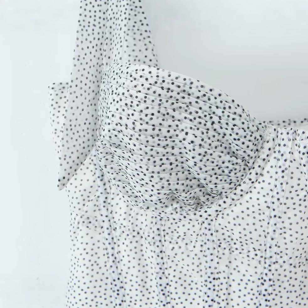 Polka Dots, Polka Dot Print, Ribbon Bow, Fishbone Support, Corset Design, Waist Cinching With Straps