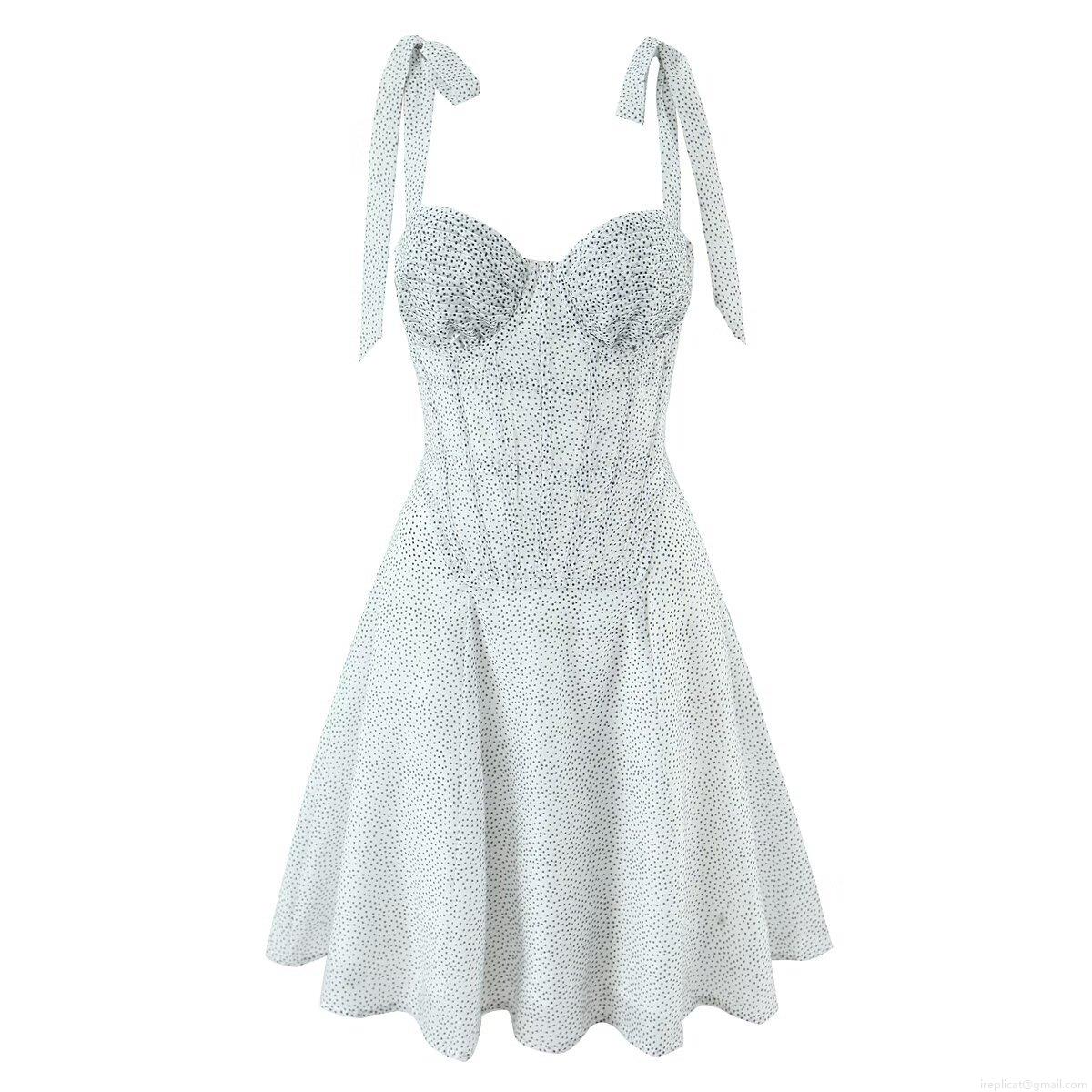 Women's Sexy Polka Dot Corset Mini Dress Bow Tie Shoulder Straps Lace Up Back Sleeveless A-Line Summer Party Dresses High Waist Dress