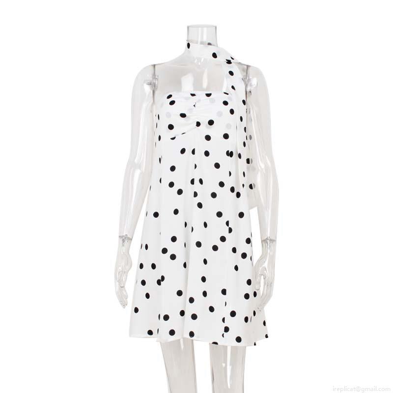 • Women's Sexy Polka Dot Print Tube Top Mini Dress with Matching Neck Scarf Elegant Backless A-Line Loose Polyester Spandex Short Dress for Summer Vacation Party