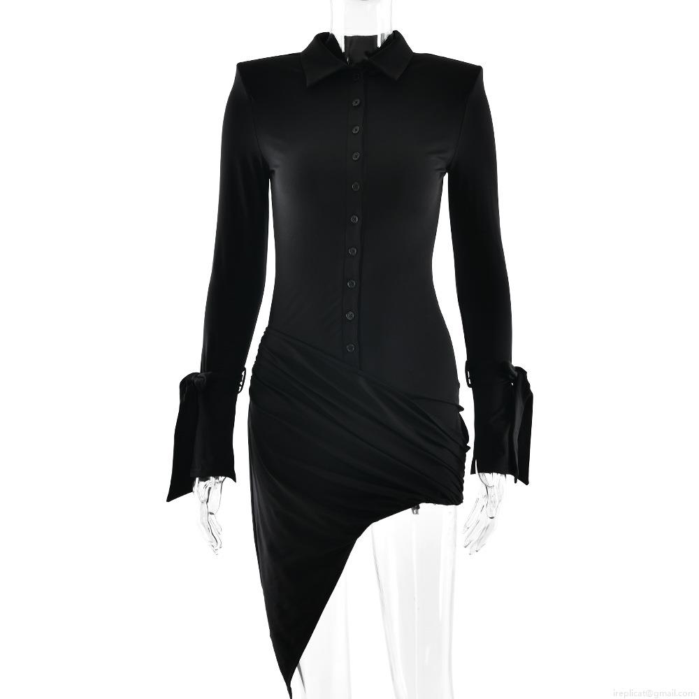 • Women's Sexy Polo Neck Long Sleeve Ruched Bodycon Mini Dress Button Down Asymmetrical Hem Milk Silk Wrap Outfits For Club Party