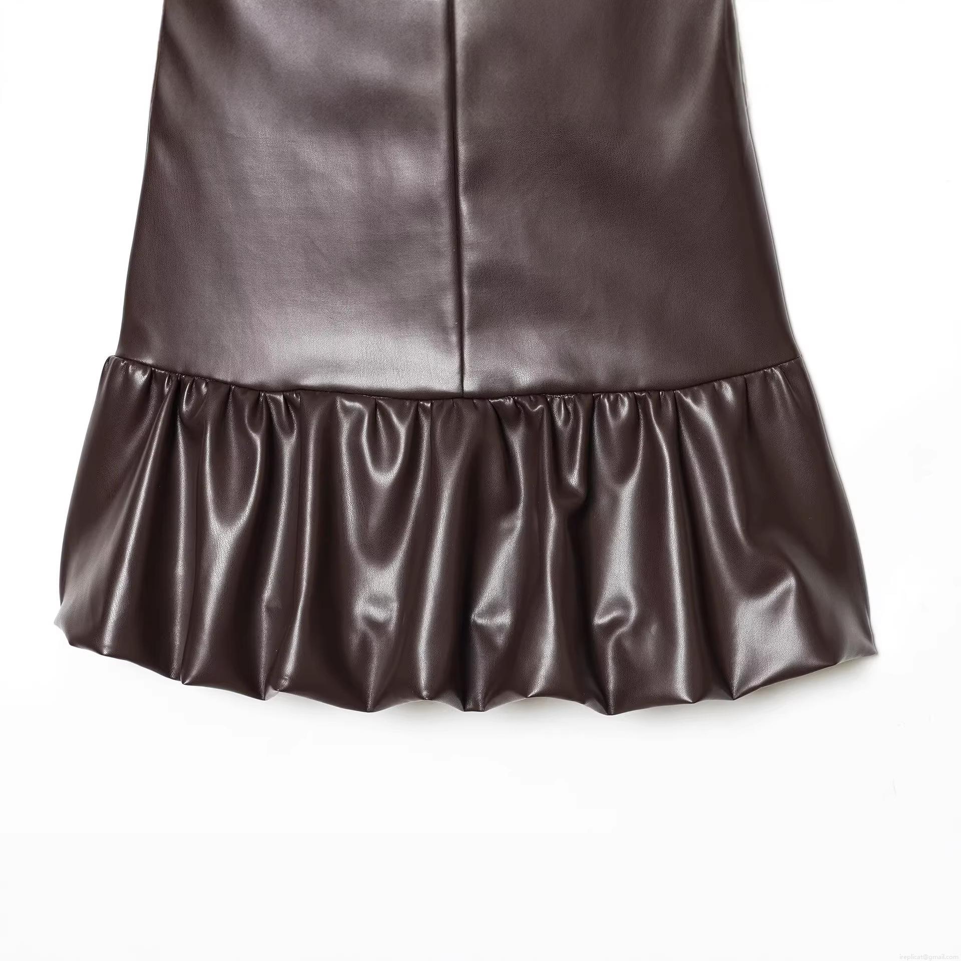 Solid Color, Pleats, Ruffles, Backless, Leather Texture, Invisible Zipper