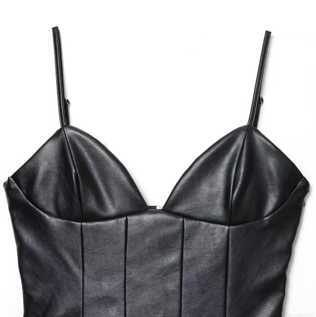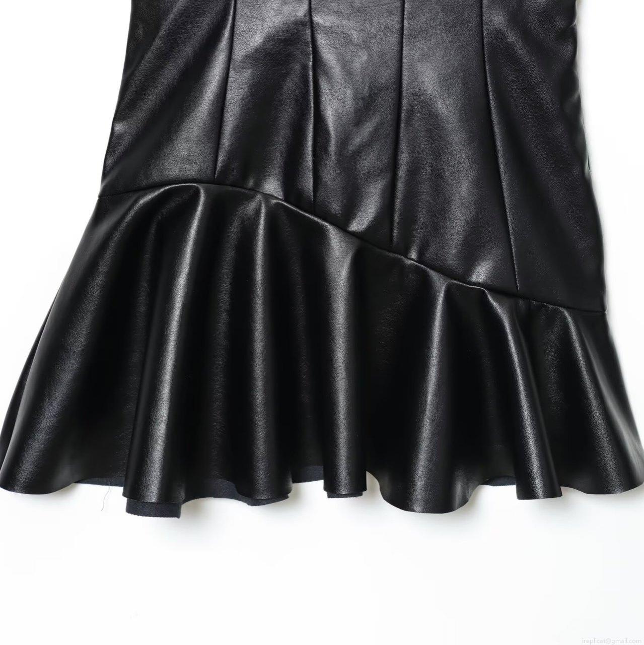 • Women's Sexy PU Leather Camisole Mini Dress Ruffle Asymmetric Hem Sleeveless Bodycon Faux Leather Party Dress For Club Night Out Dating Black