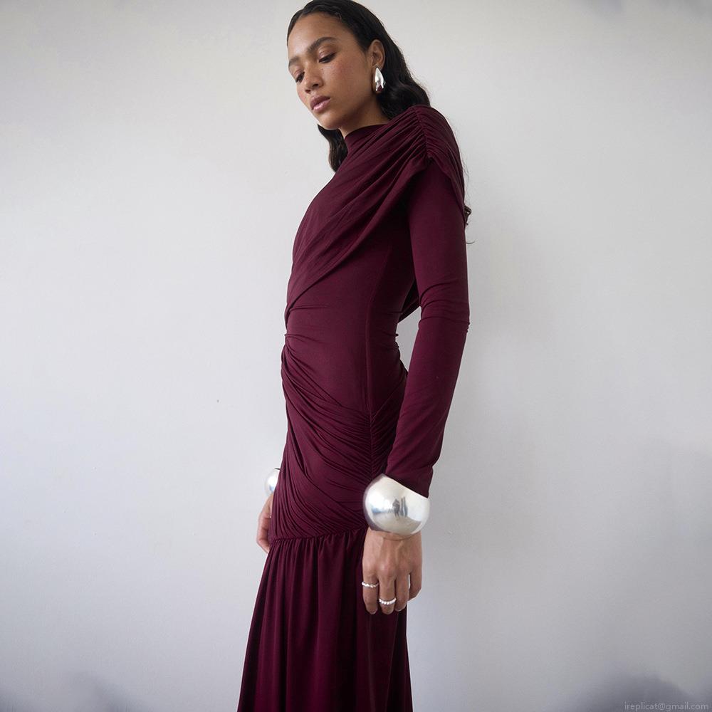 Solid Color, Splice, Scarf, Asymmetric, Pleats, Gathering