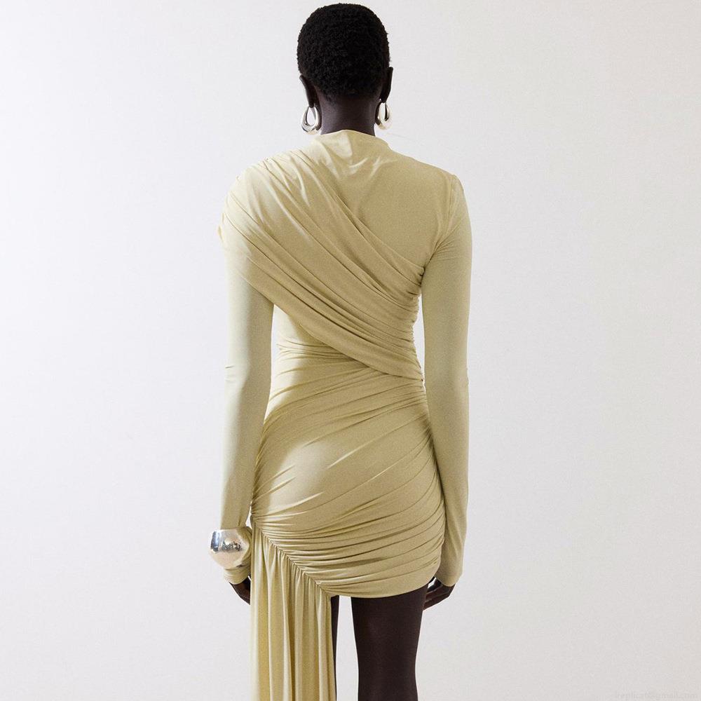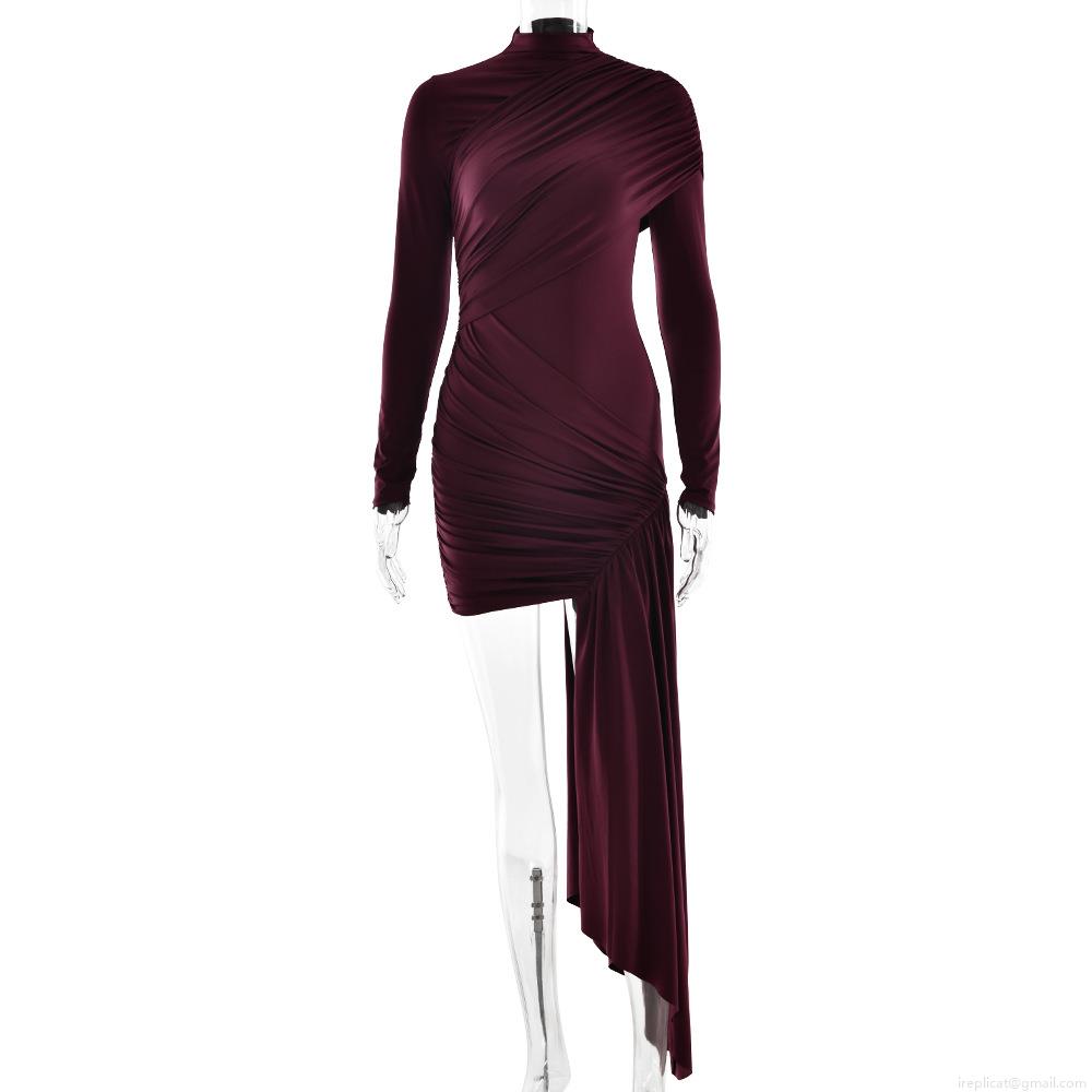 • Women's Sexy Ruched Bodycon Dress Long Sleeve Round Neck Asymmetric Hem Ribbon Slim Fit Polyester Milk Silk Party Club Streetwear Mini Dress