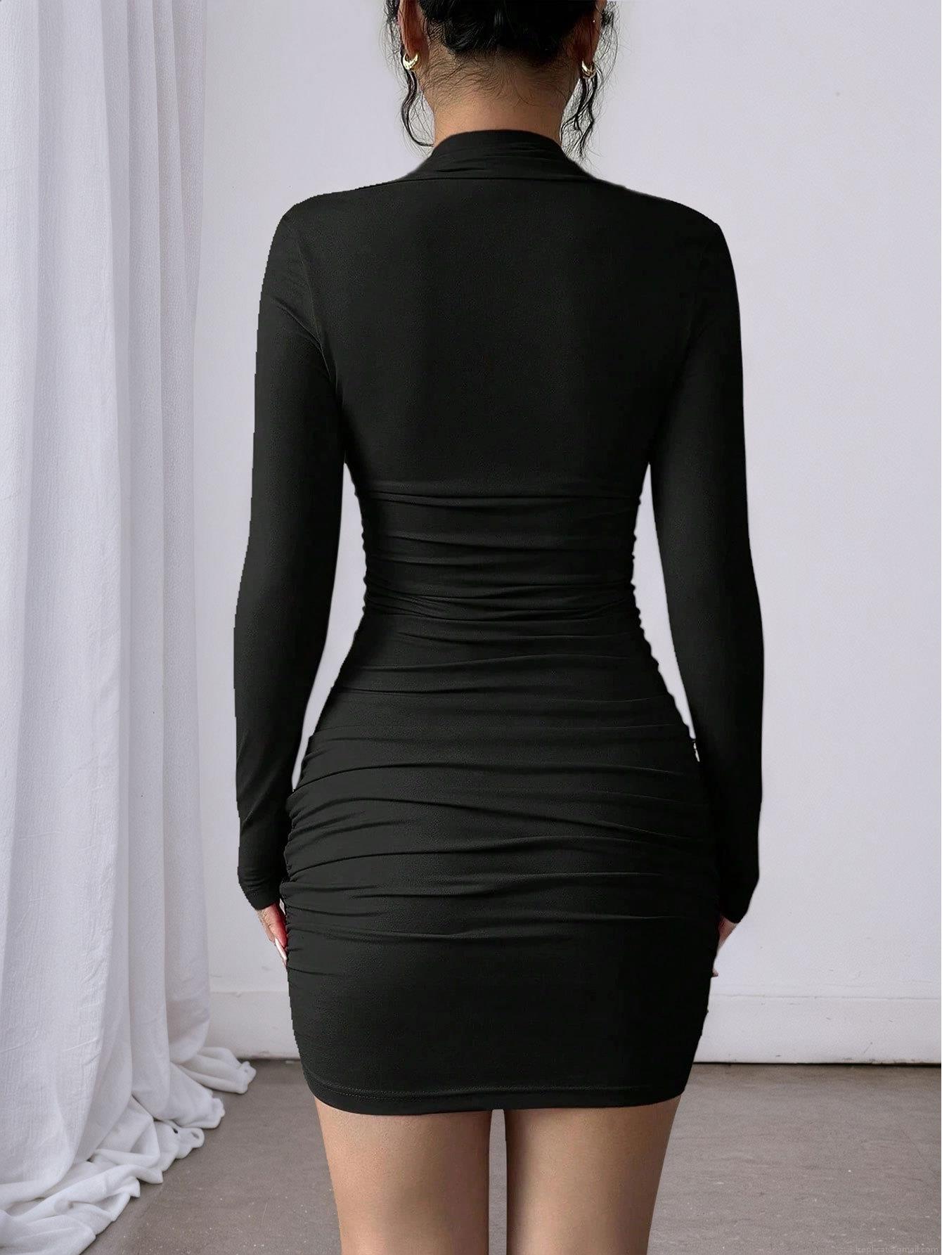 • Women's Sexy Ruched Bodycon Dress Long Sleeve Sweetheart Neck Elegant Polyester Spandex Slim Fit Mini Dress For Party Club Night Out Ladies