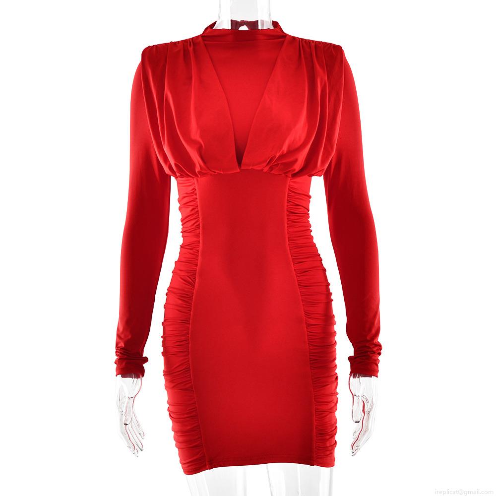 • Women's Sexy Ruched Bodycon Mini Dress Long Sleeve High Neck Milk Silk Polyester Clubwear Party Night Out Streetwear Slim Fit Dress