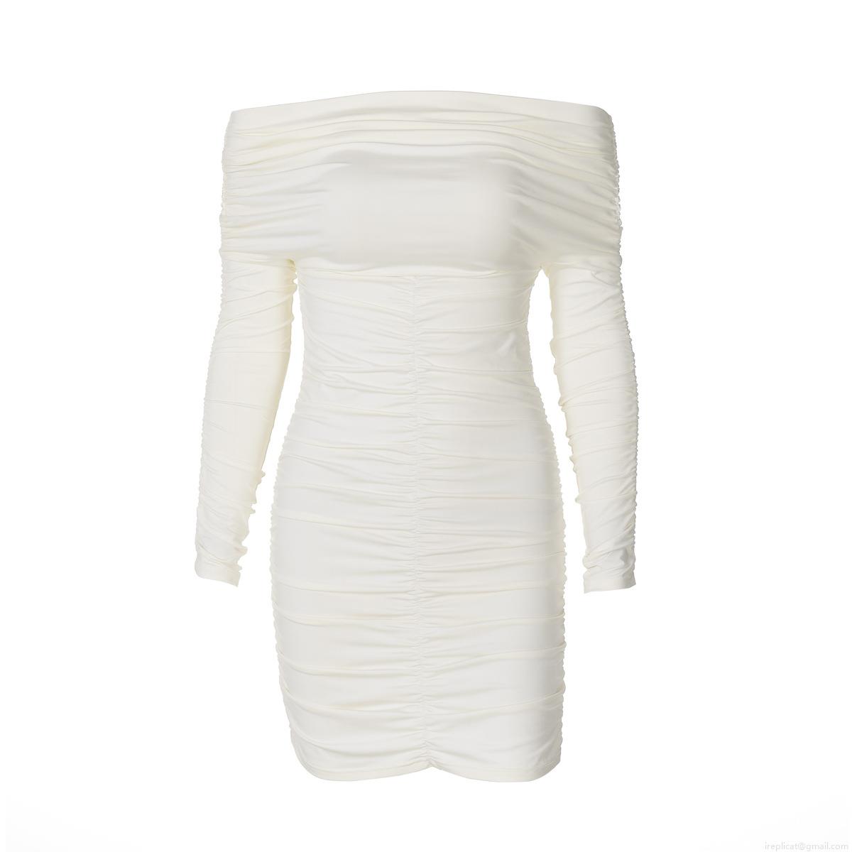 • Women's Sexy Ruched Off-the-Shoulder Mini Dress Long Sleeve Slim Fit Bodycon Wrap Solid Color Polyester Spandex Club Party Night Out Dress
