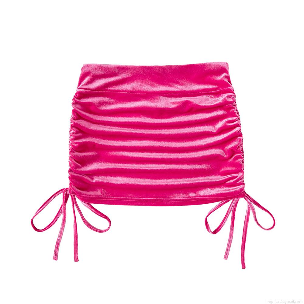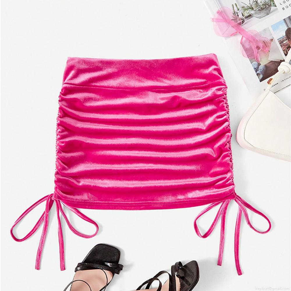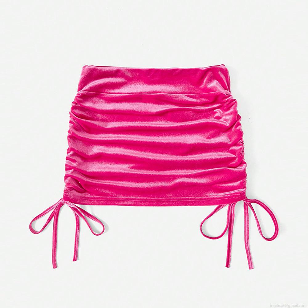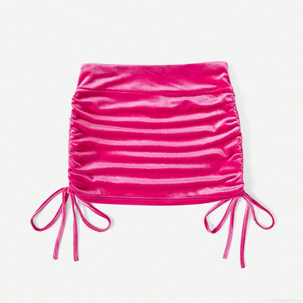 • Women's Sexy Ruched Velvet Mini Skirt High Waisted Drawstring Bodycon Short Skirt For Party Club Night Out Sexy Y2K Style Rose Red Polyester Spandex Skirt