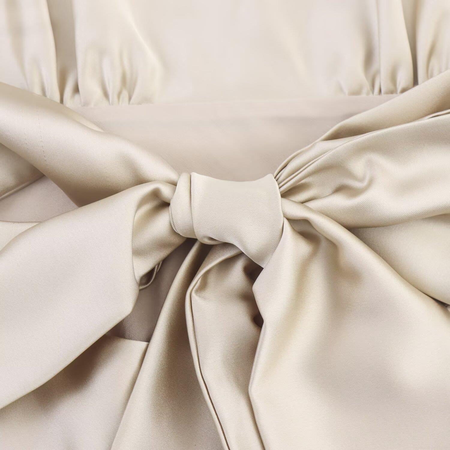 Solid Color, Bow, Pleats, Neckband, Satin Finish