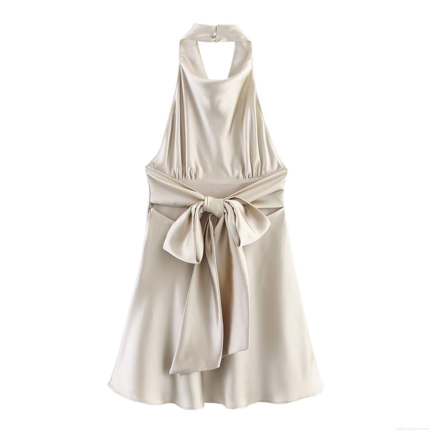 • Women's Sexy Satin Halter Neck Mini Dress Elegant Backless A-Line Party Cocktail Dress with Back Bow Detail Sleeveless Night Out Wear