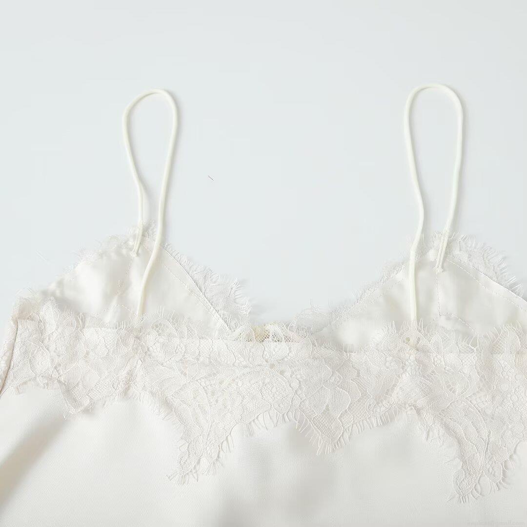 • Women's Sexy Satin Lace Patchwork Slip Dress V-Neck Bow Tie Spaghetti Strap A-Line Mini Dress Elegant Sleeveless Summer Casual Party Evening Dress