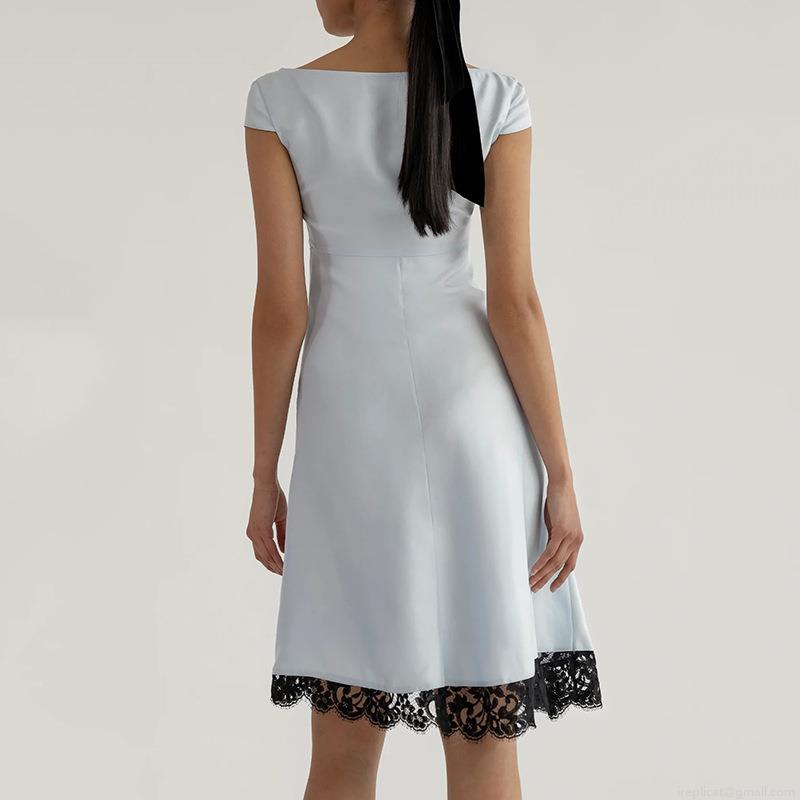 Solid Color, Splice, Lace, Bow, Satin