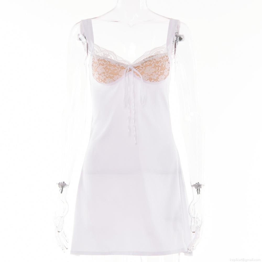 Women's Sexy Satin Mini Dress With Lace Patchwork Backless Bodycon Spaghetti Strap Low Neck Sleeveless Party Clubwear Dress For Women