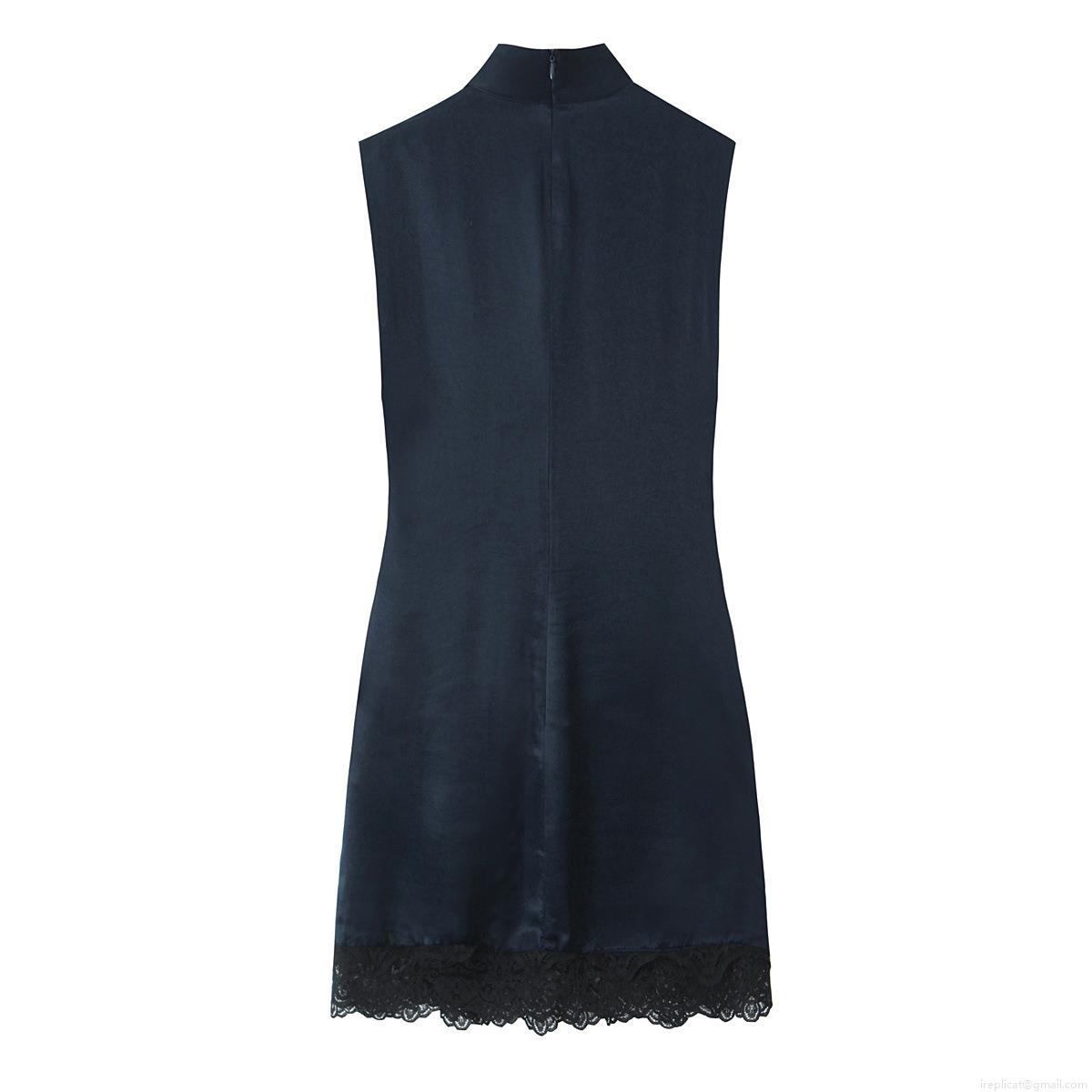 Women's Sexy Satin Sleeveless Mini Dress Lace Patchwork Ruched Side Stand Collar Bodycon Party Evening Short Dress Elegant Night Club Wear