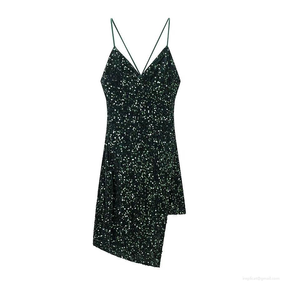 Solid Color, Sequin, Backless, Irregular Hem, Deep V, Thin Straps