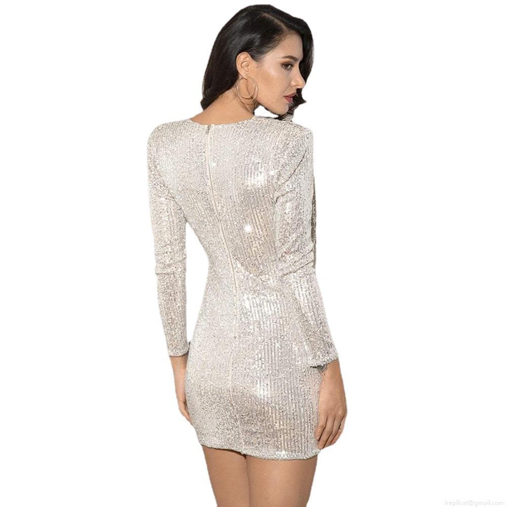 • Women's Sexy Sequin Mini Dress Deep V-Neck Long Sleeve Irregular Hem Slim Fit Glitter Evening Party Clubwear Cocktail Dress For Ladies