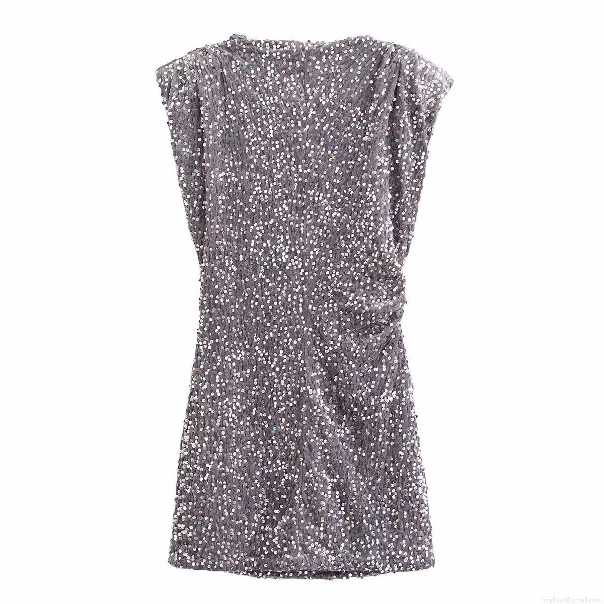 Women's Sexy Sequin Sleeveless Mini Dress Shiny Bicolor Nightclub Party Bodycon Short Dress Elegant Evening Outfits For Women