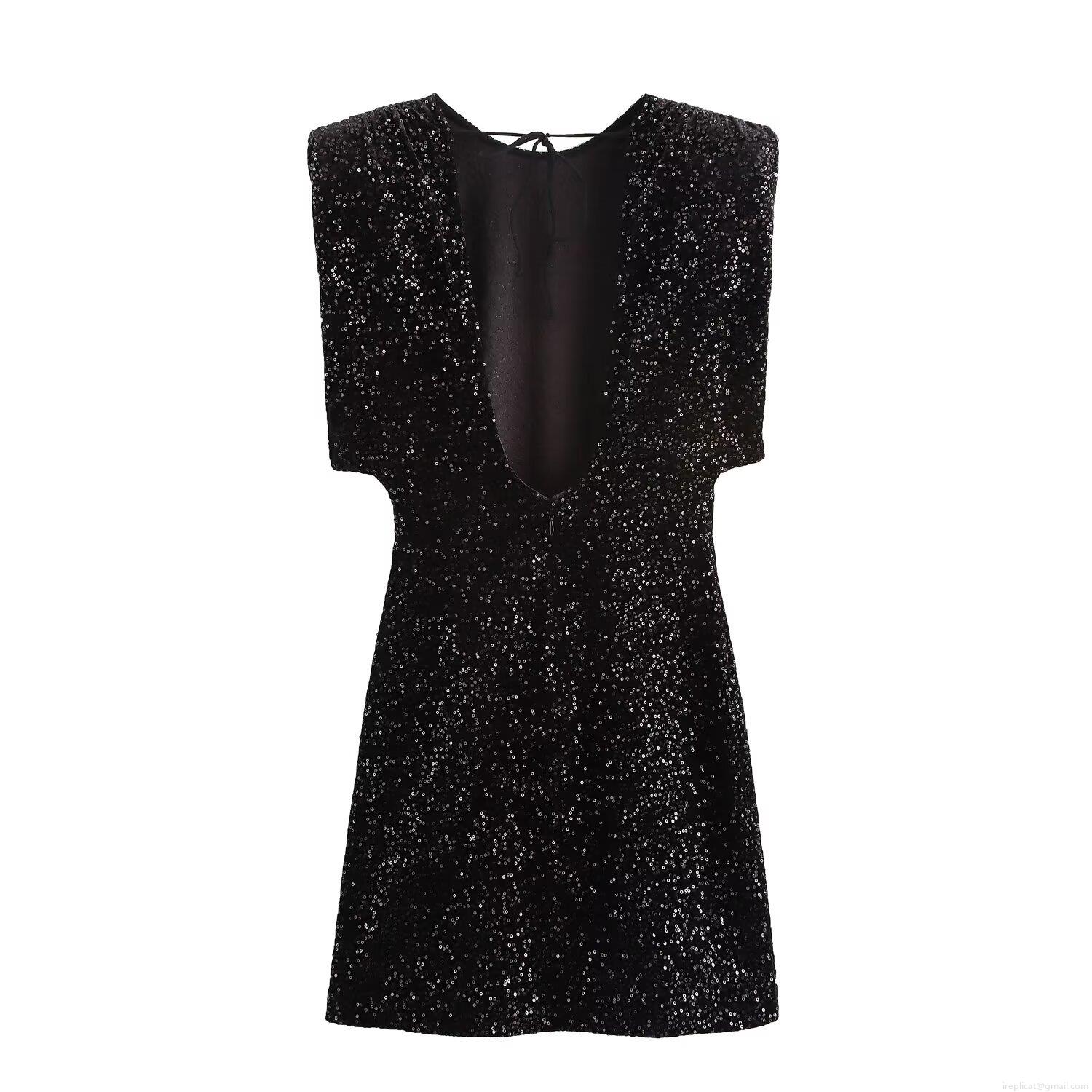 • Women's Sexy Sequin Velvet Mini Dress Sleeveless Backless A-Line Party Dress Sparkling Evening Nightclub Bodycon Dress For Party