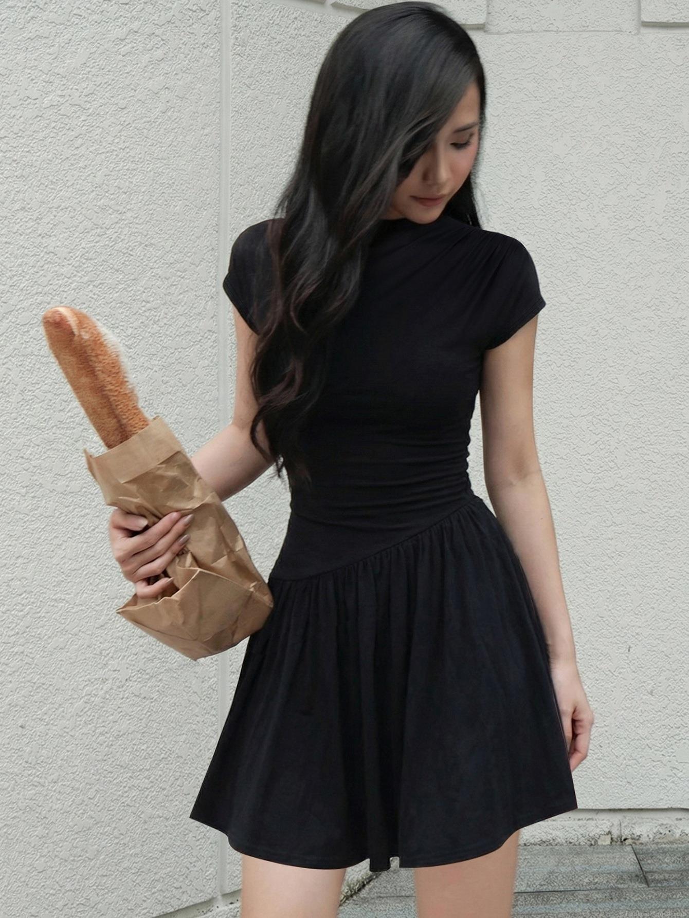 • Women's Sexy Short Sleeve Mini Dress Backless Lace-Up Ruched Bodycon Dress Polyester Spandex Solid Color Slim Fit Elegant Party Club Night Out Summer Fashion Outfit