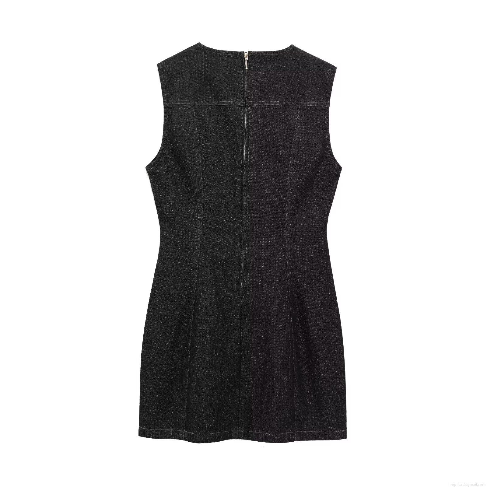 • Women's Sexy Sleeveless Denim Mini Dress Elegant Round Neck Black Cotton Jean Dress With Back Zipper Fashion Casual Summer Bodycon Dress For Ladies