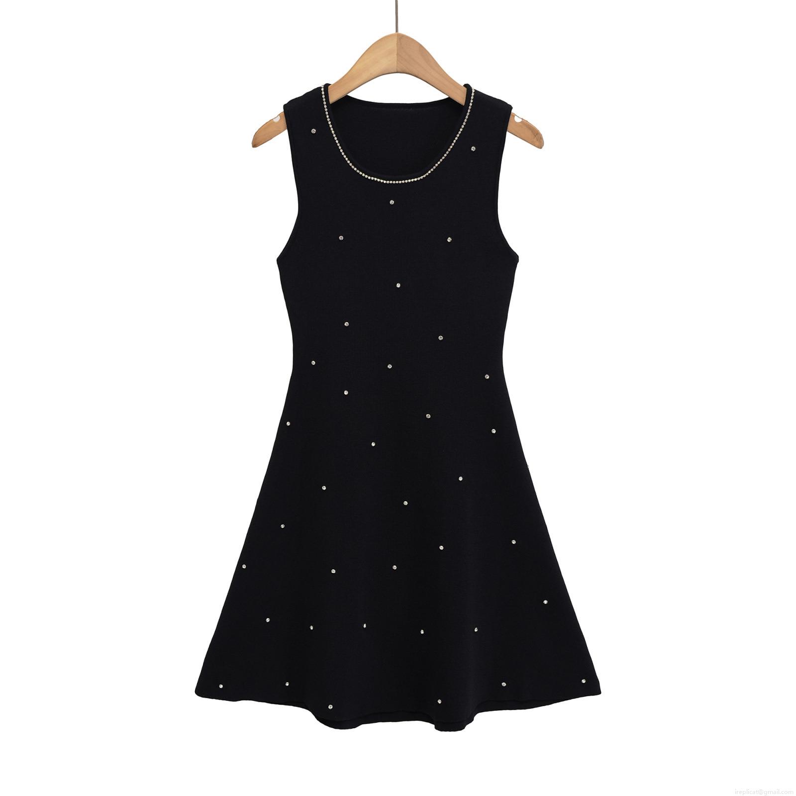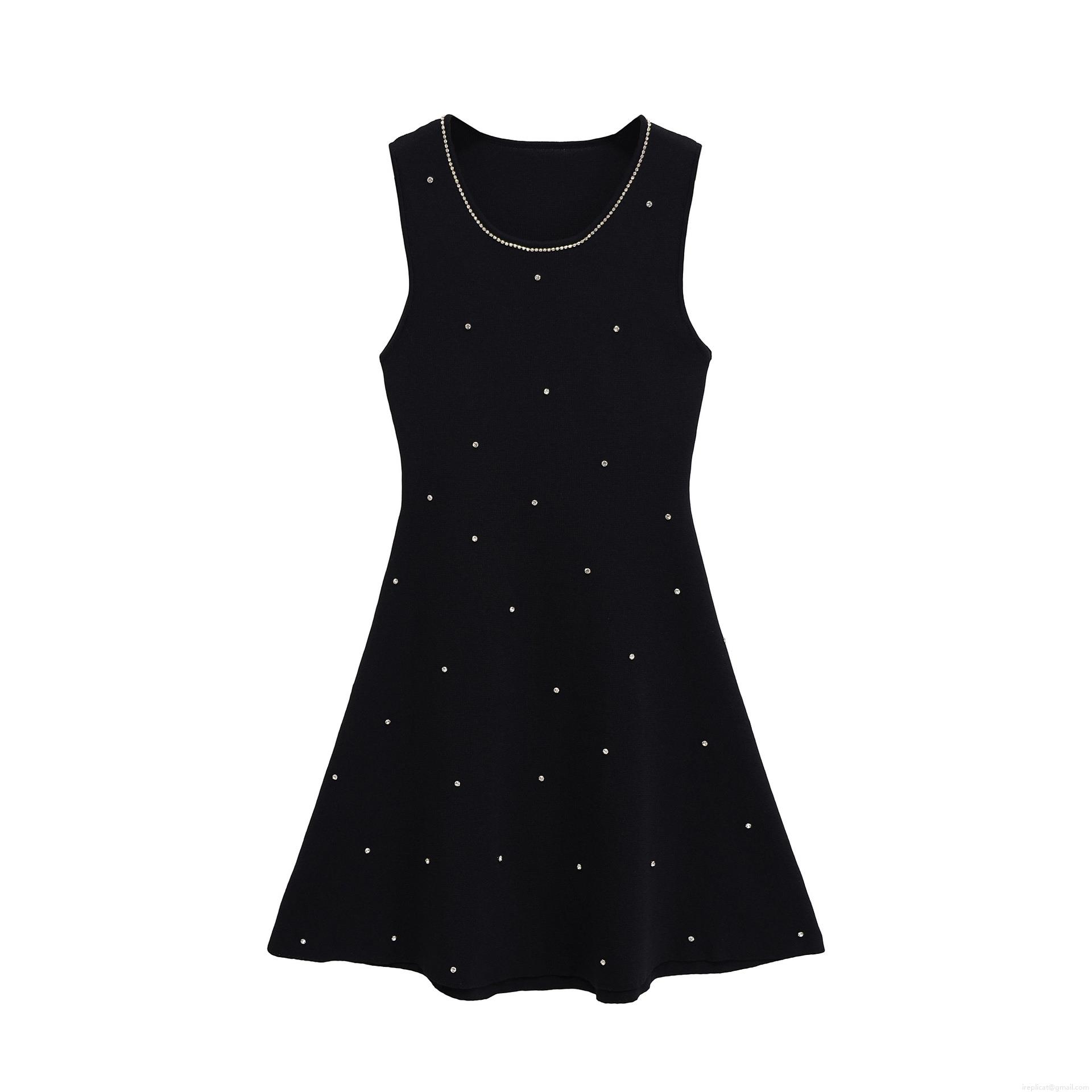 • Women's Sexy Sleeveless Knit Mini Dress Elegant Rhinestone Studded Round Neck A-Line Bodycon Knitted Party Clubwear Streetwear Dress