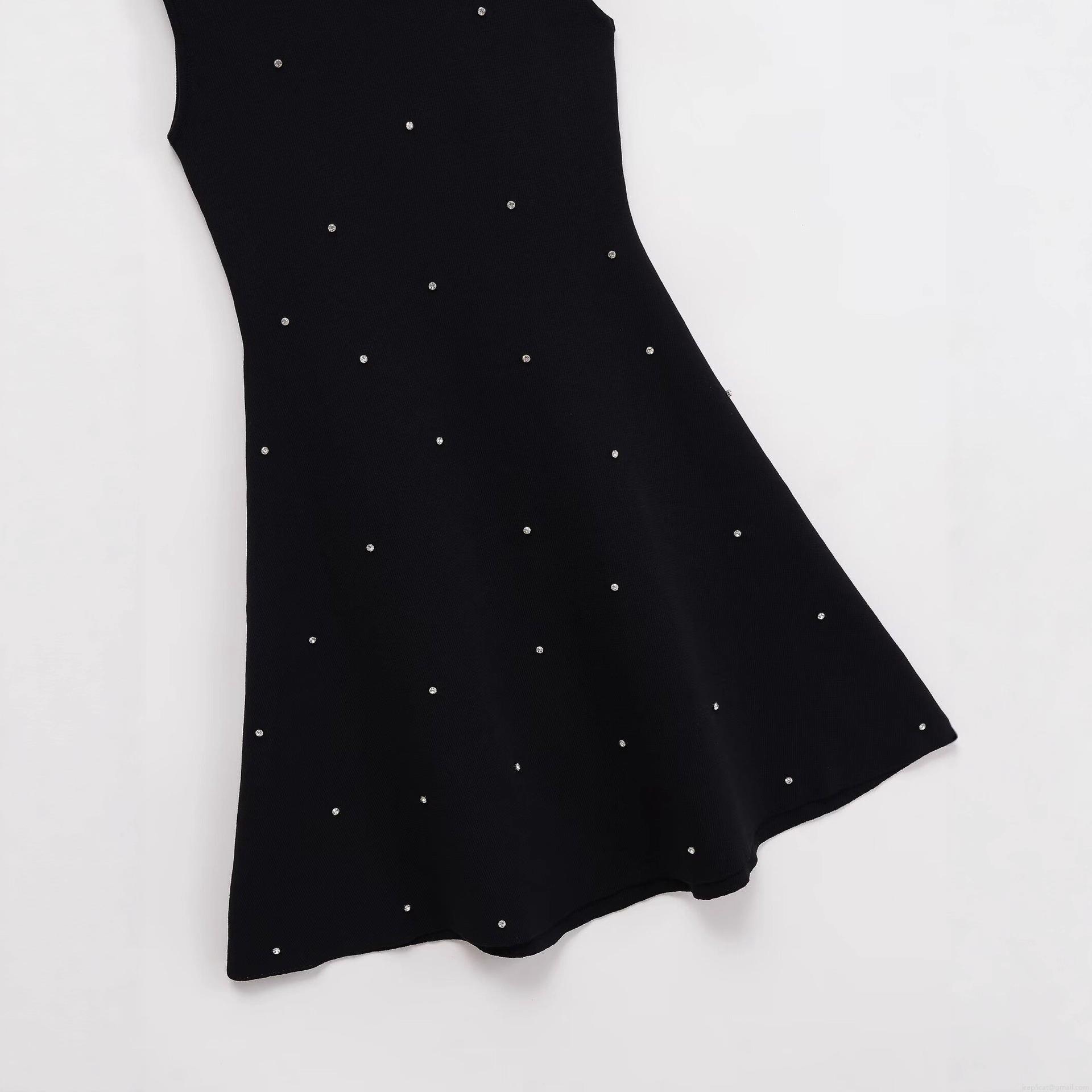 Women's Sexy Sleeveless Knit Mini Dress Elegant Rhinestone Studded Round Neck A-Line Bodycon Knitted Party Clubwear Streetwear Dress