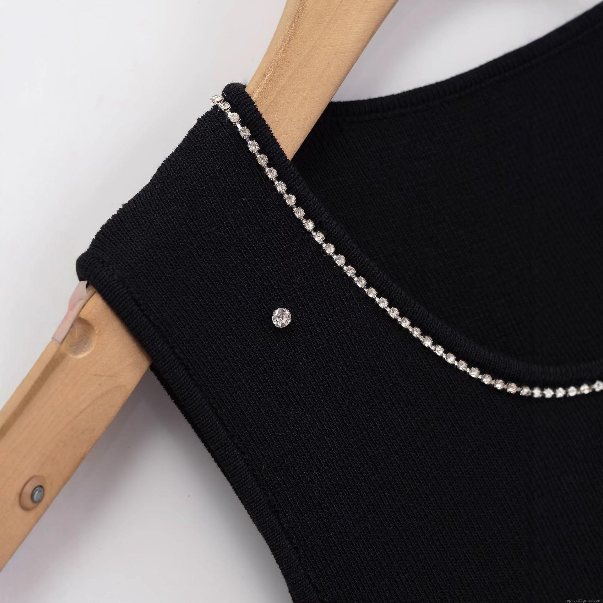 Solid Color, Rhinestone Decoration, Knitted Texture, Sleeveless Design