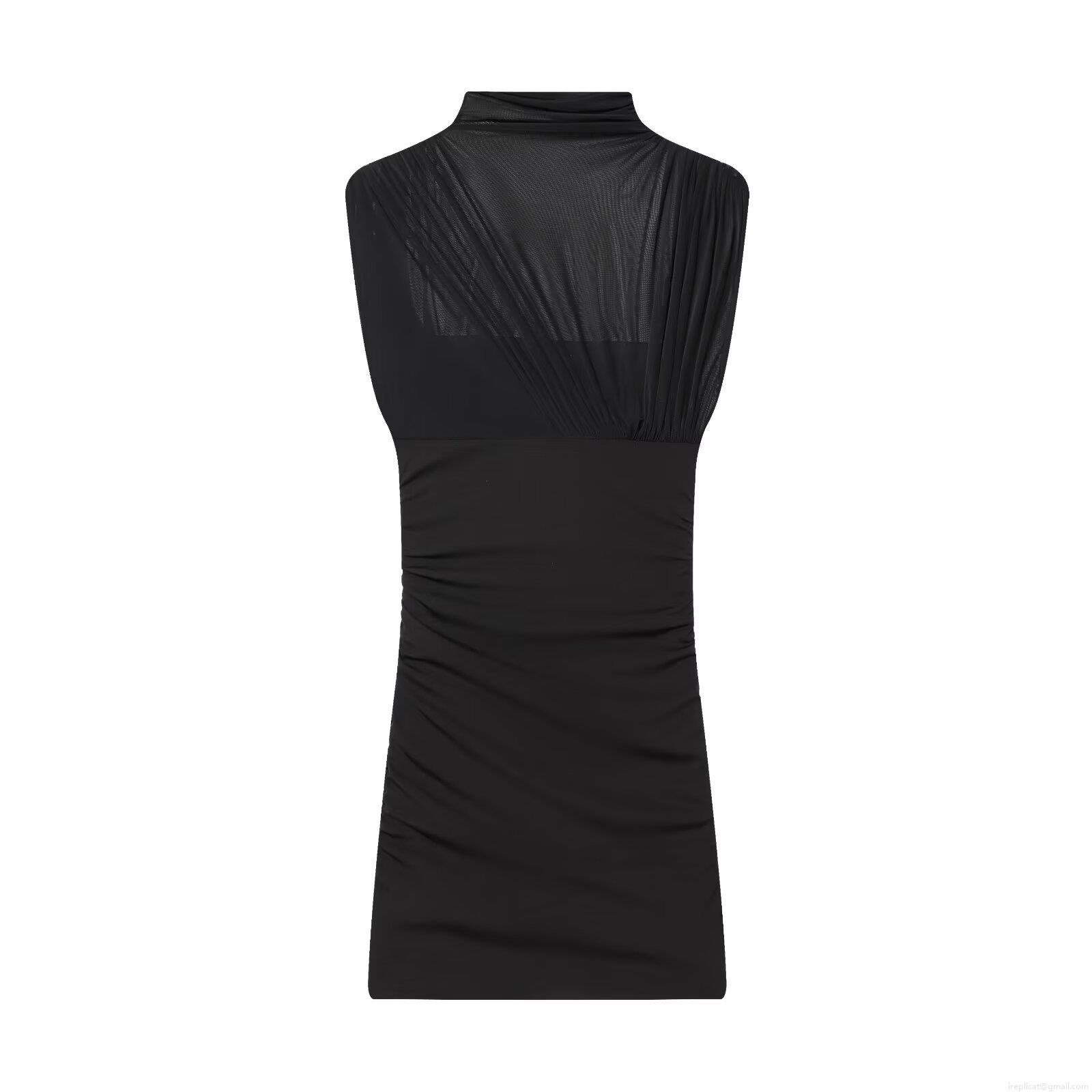 Women's Sexy Sleeveless Mesh Patchwork Bodycon Mini Dress Ruched Stand Collar Street Style Party Slim Fit Polyester Clubwear Short Dress