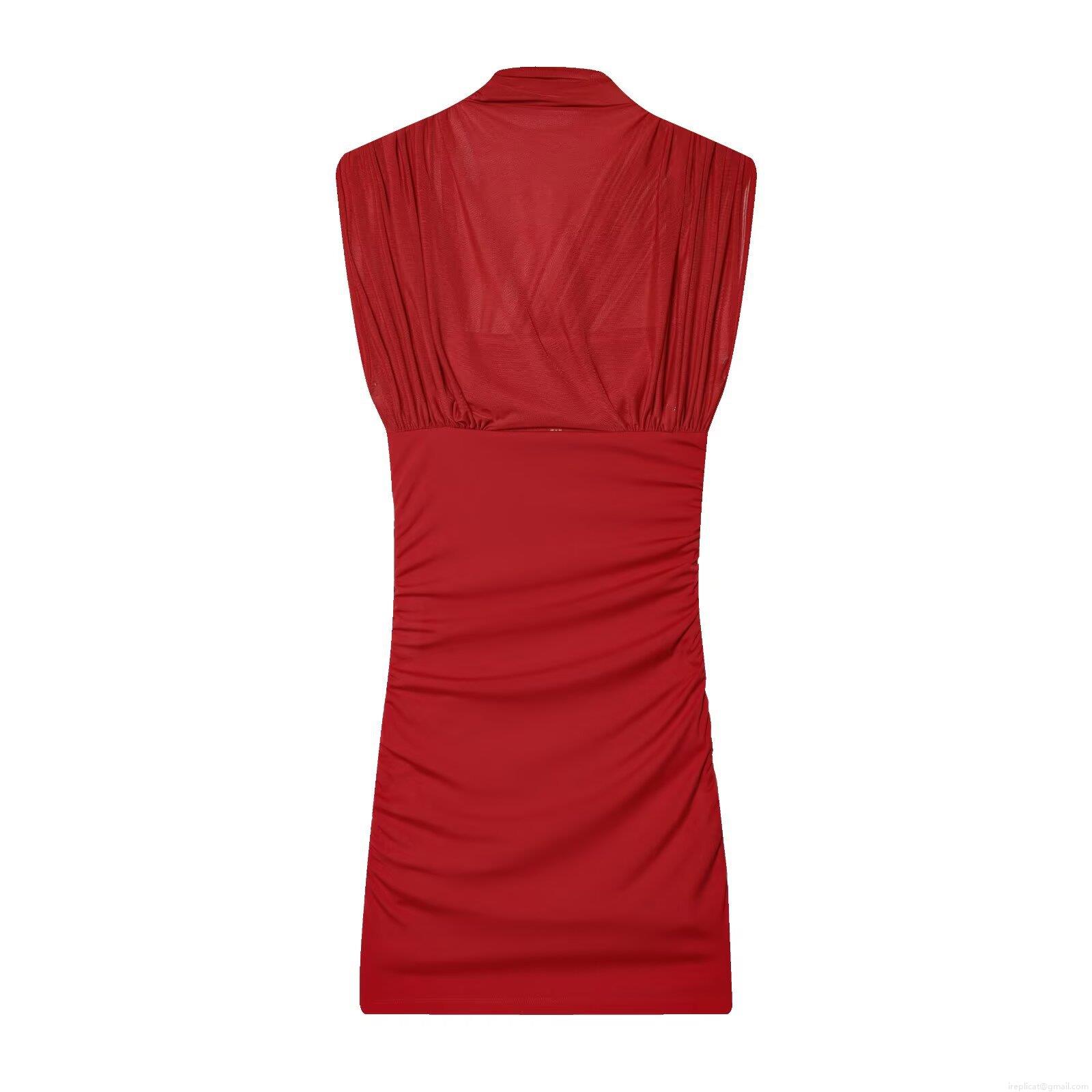 • Women's Sexy Sleeveless Mesh Patchwork Bodycon Mini Dress Ruched Stand Collar Street Style Party Slim Fit Polyester Clubwear Short Dress