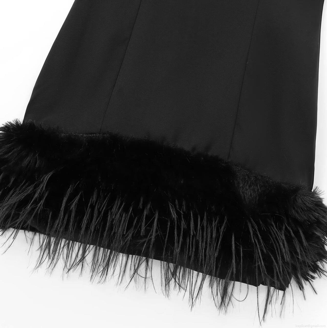 • Women's Sexy Sleeveless Mini Dress With Feather Trim Hem Elegant Round Neck A-Line Solid Color Clubwear Party Dress Polyester Spandex Outfit For Women