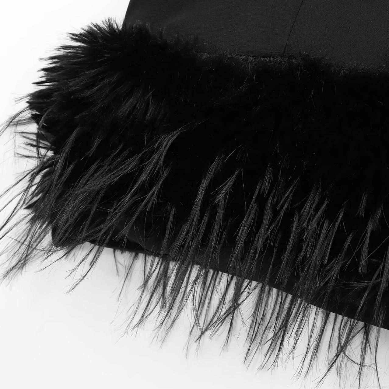 Women's Sexy Sleeveless Mini Dress With Feather Trim Hem Elegant Round Neck A-Line Solid Color Clubwear Party Dress Polyester Spandex Outfit For Women