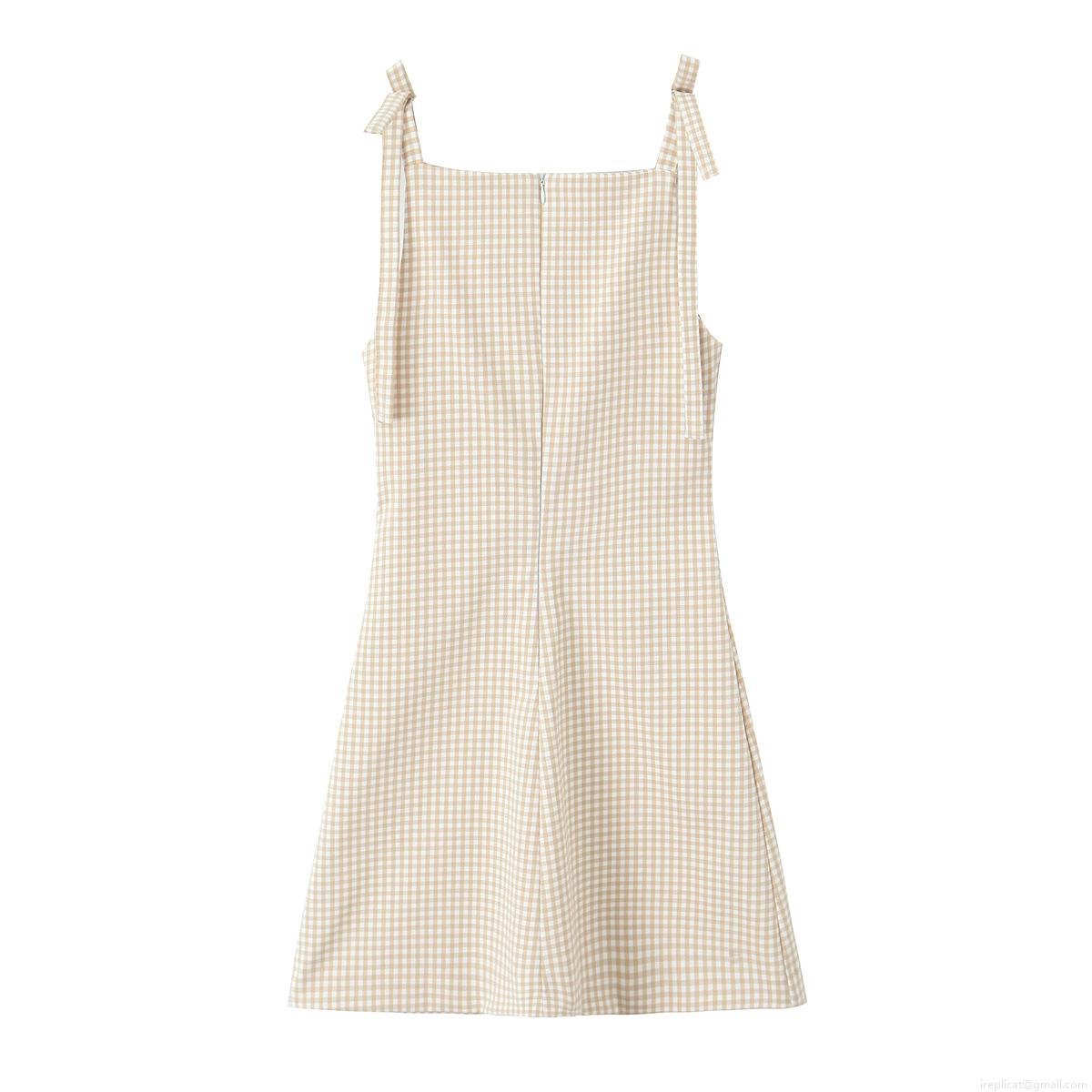 • Women's Sexy Slim Fit Plaid Cami Mini Dress Elegant Bow Tie Strap Sleeveless Bodycon Party Clubwear Dresses For Summer White Gingham Pattern Women