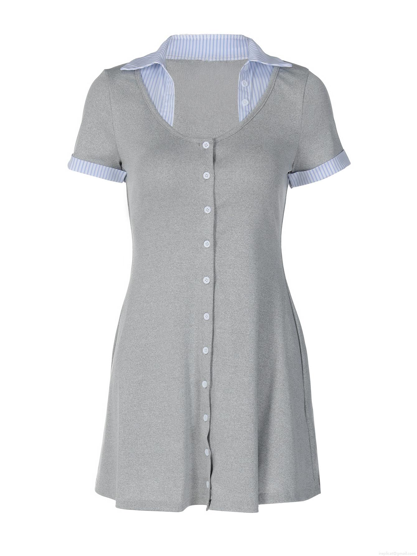 • Women's Sexy Slim Fit Ribbed Knit Mini Dress with Contrast Striped Turn-down Collar Short Sleeve Button Front Patchwork Bodycon Dress Summer Casual Fashion