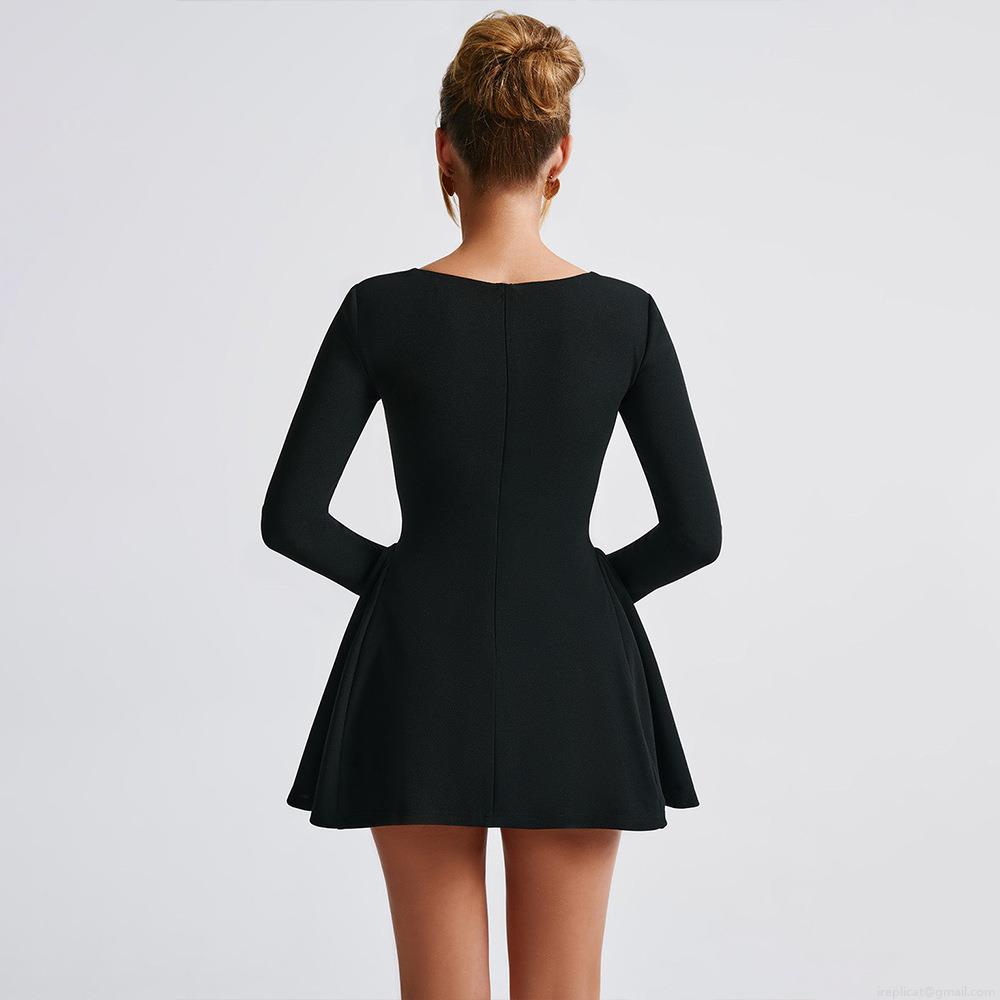 • Women's Sexy Square Neck Long Sleeve Mini Dress Solid Color Slim Fit High Waist A-Line Skirt With Bow Detail Polyester Party Evening Clubwear